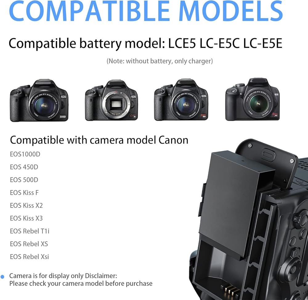 【النماذج المتوافقة】نموذج البطارية المتوافق LCE5 LC-E5C LC-E5E. متوافق مع نماذج كاميرا Canon Rebel XS XSi T1i EOS 450D 500D 1000D DSLR Kiss X2 Kiss X3 Kiss F الرقمية SLR.