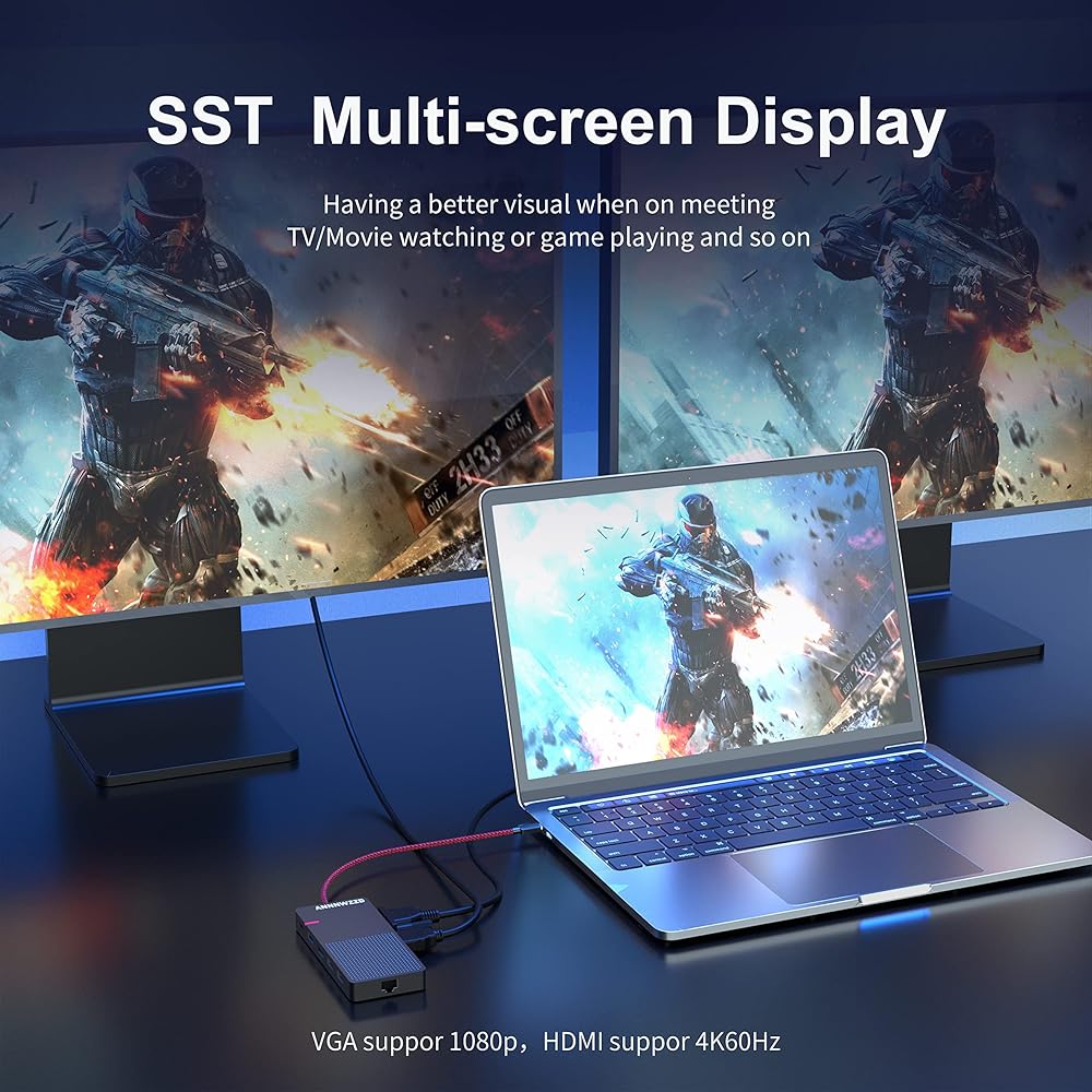【قاعدة إرساء للكمبيوتر المحمول 11 في 1】محطة إرساء USB C، شاشات مزدوجة للتوصيل والتشغيل، سهلة الاستخدام. لا يوجد سائق إضافي مطلوب. مصمم خصيصًا للكمبيوتر المحمول USB C