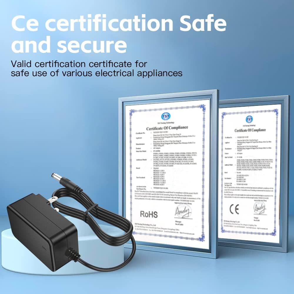 1. الإدخال: التيار المتناوب 100 فولت-240 فولت 50/60 هرتز ؛ الإخراج: تيار مستمر 12 فولت، 3 أمبير 36 وات كحد أقصى؛ حجم قابس التيار المستمر هو 5.5 مم × 2.5 مم. متوافق مع 5.5 مم × 2.1 مم. القطبية داخل موجب "+"، خارج سلبي "-"، طول سلك الطاقة: حوالي 3 أقدام.