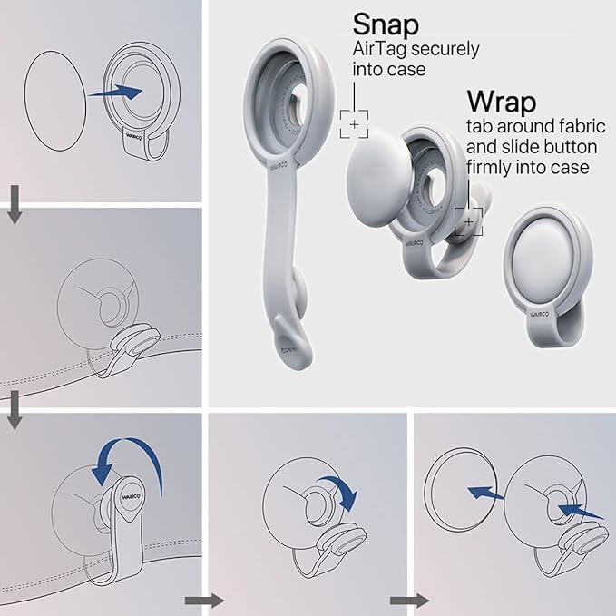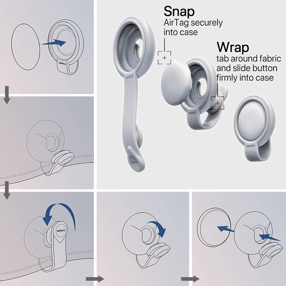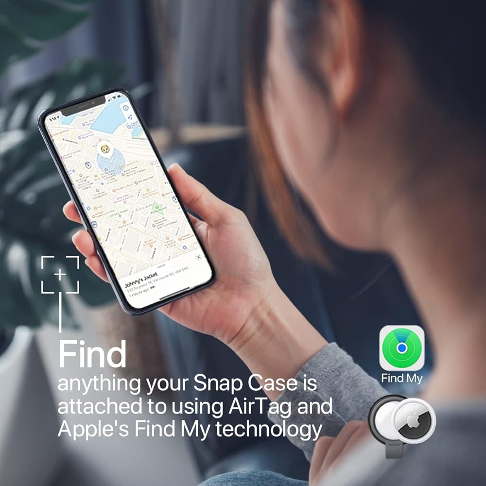 • سهل الاستخدام: ما عليك سوى طي لسان حامل AirTag حول الملابس وأطواق الكلاب والأمتعة والعديد من العناصر الأخرى، ثم أدخل آلية الإطباق بقوة. أصبحت حافظة Snap Case الخاصة بك جاهزة الآن لتتبع أحبائك وعناصرك.
