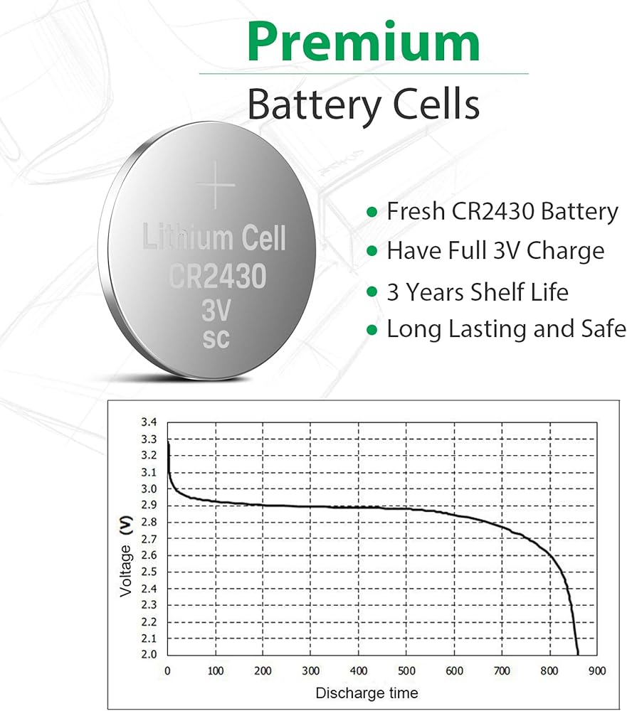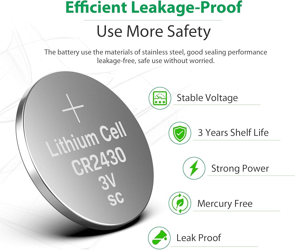 ما تحصل عليه: 5 بطاريات CR2430 في عبوة نفطة دقيقة. ضمان لمدة 18 شهرًا وخدمة عملاء ودودة.