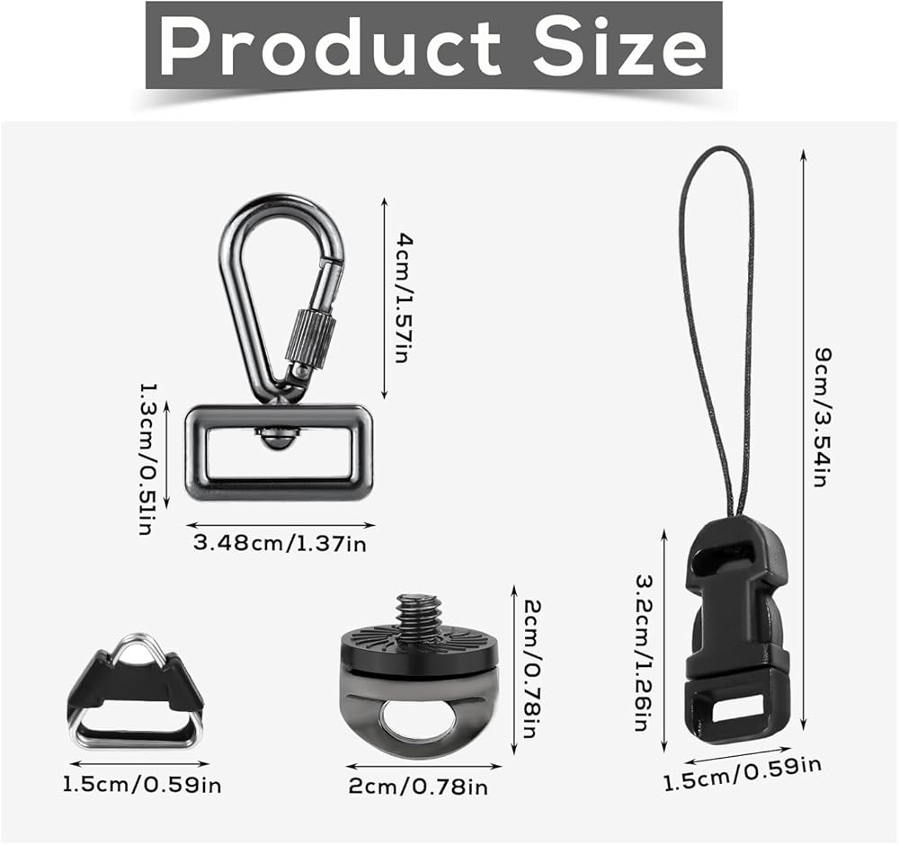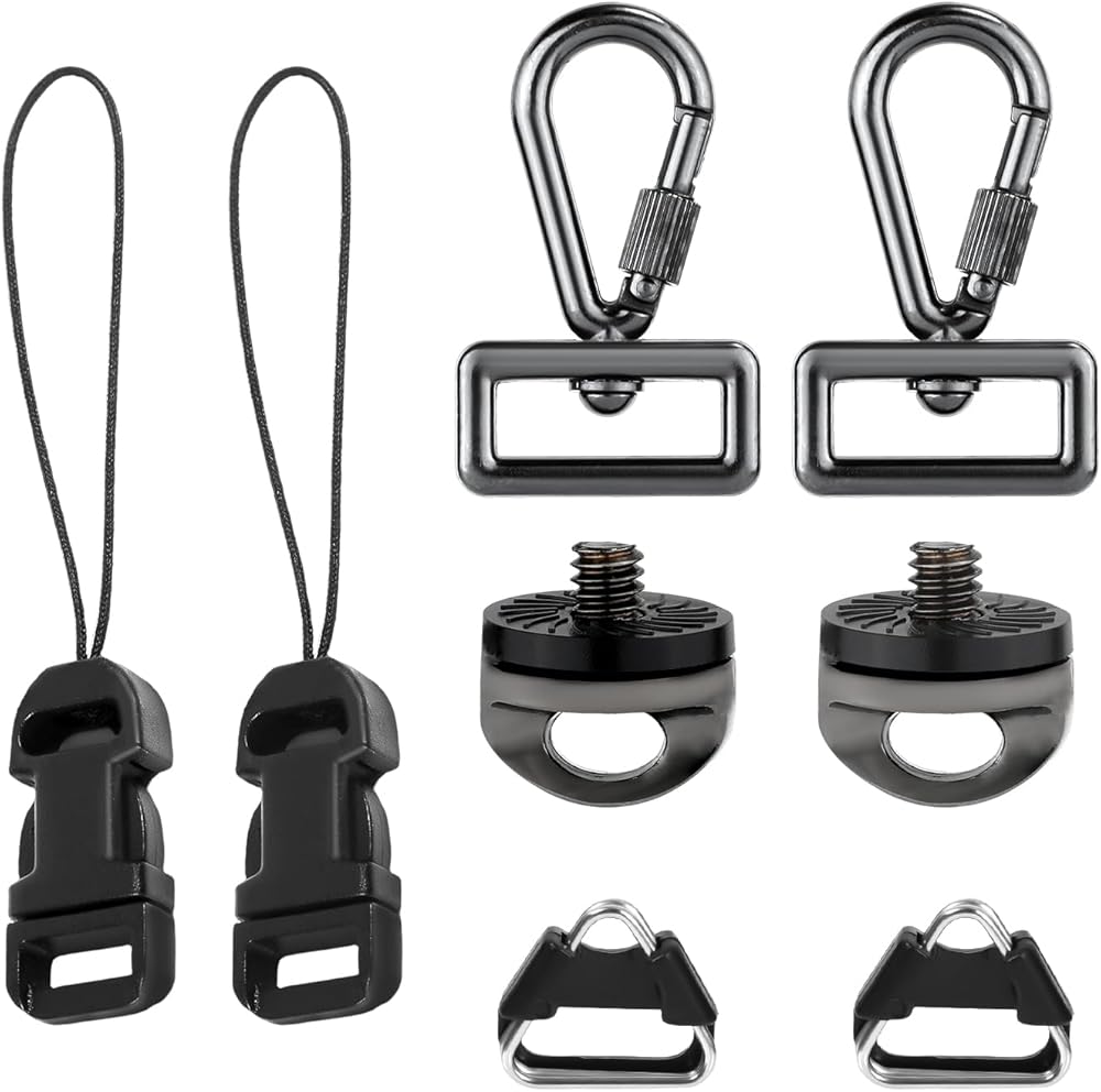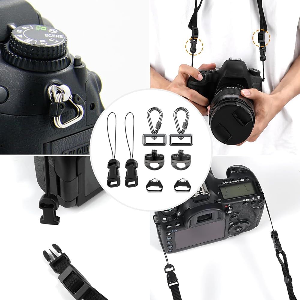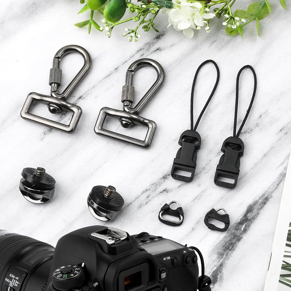 • Package Content: You will receive 8 pieces of quick release camera strap connectors, including 2 triangular rings, 2 strap buckles, 2 quick release screws and 2 hooks, sufficient quantity to meet your needs.