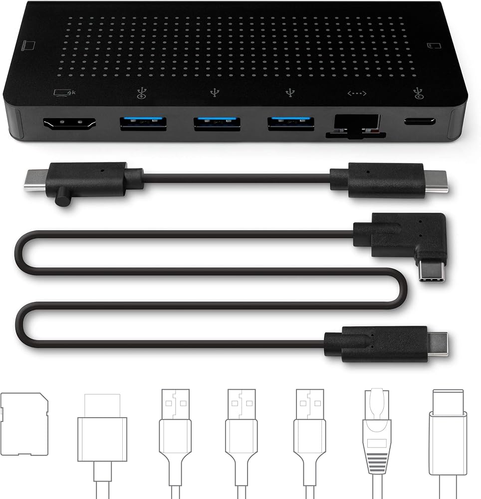 اتصال متعدد المنافذ: منفذ HDMI 4K، (2) منافذ USB A 3.0، (1) منفذ USB A مزدوج الوظائف مع BC 1.2 لما يصل إلى 7.5 واط للشحن بشكل أسرع، (1) منفذ جيجابت إيثرنت، (1) منفذ SD / ( 1) منفذ Micro SD [يتم قراءة البطاقات في وقت واحد]، (1) منفذ USB C 3.1 بقدرة 85 وات PD