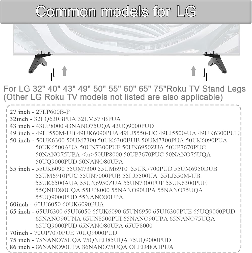 الموديلات المتوافقة لبعض أرجل حامل تلفزيون LG الذكي: (نماذج التلفزيون غير المدرجة قابلة للتطبيق أيضًا)