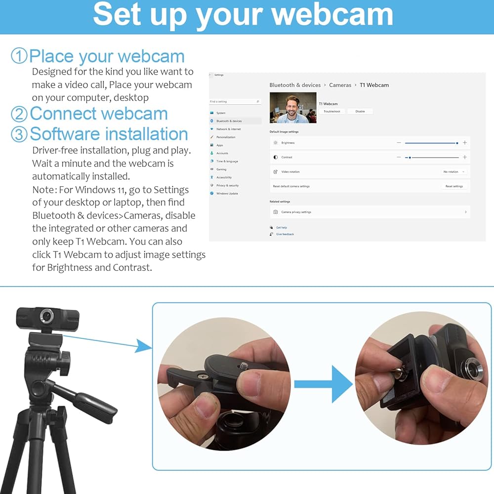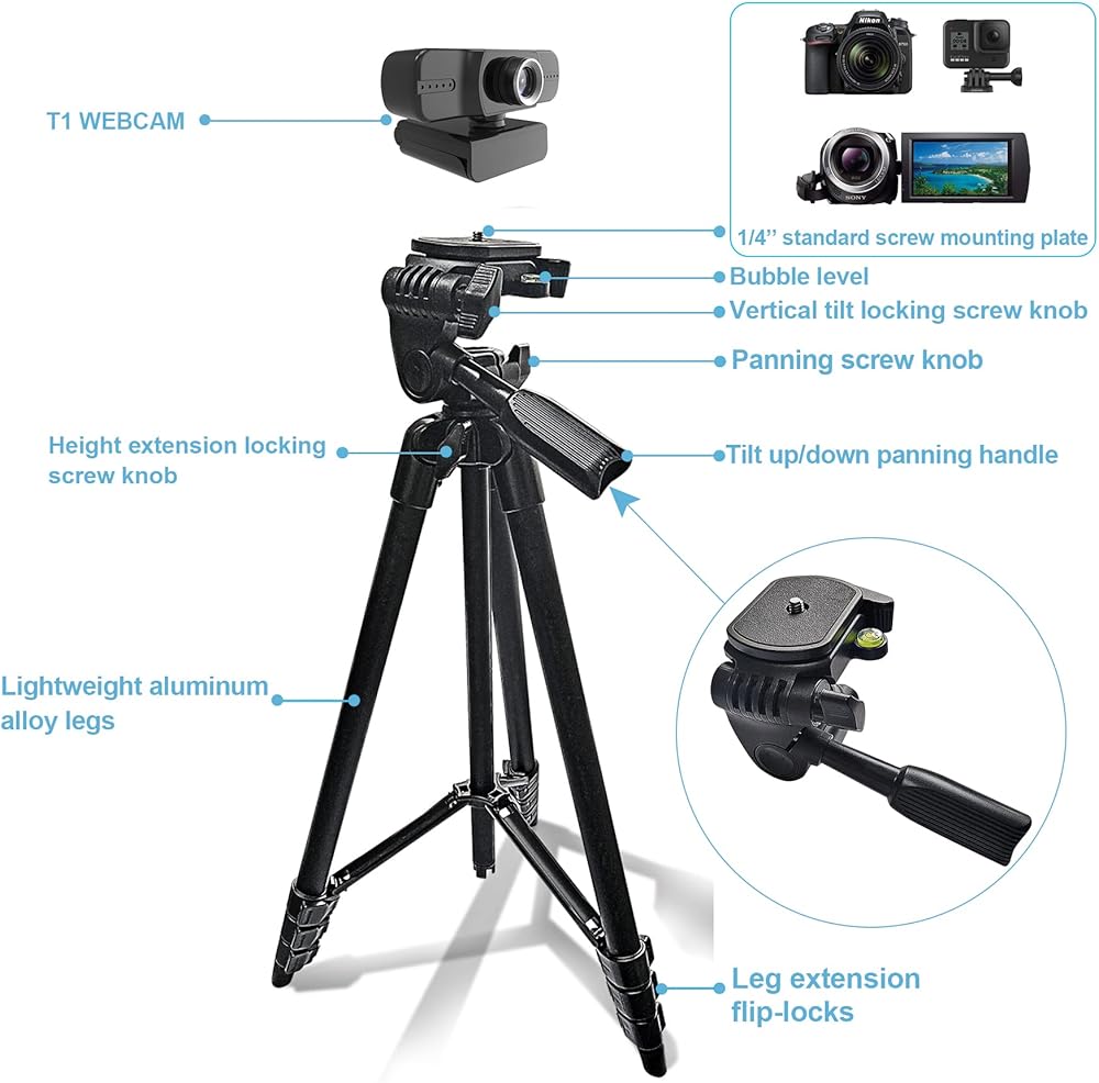 كاميرا ويب NUNET 1080p USB مع. كاميرا ترايبود متدفقة للكمبيوتر الشخصي ث. متوافق مع الميكروفون. حامل يعمل بنظام التشغيل Windows Android وMac مقاس 18-60 بوصة مع مقبض رأس دائري لتكبير/تصغير المؤتمرات عبر مكالمات الفيديو المباشرة
