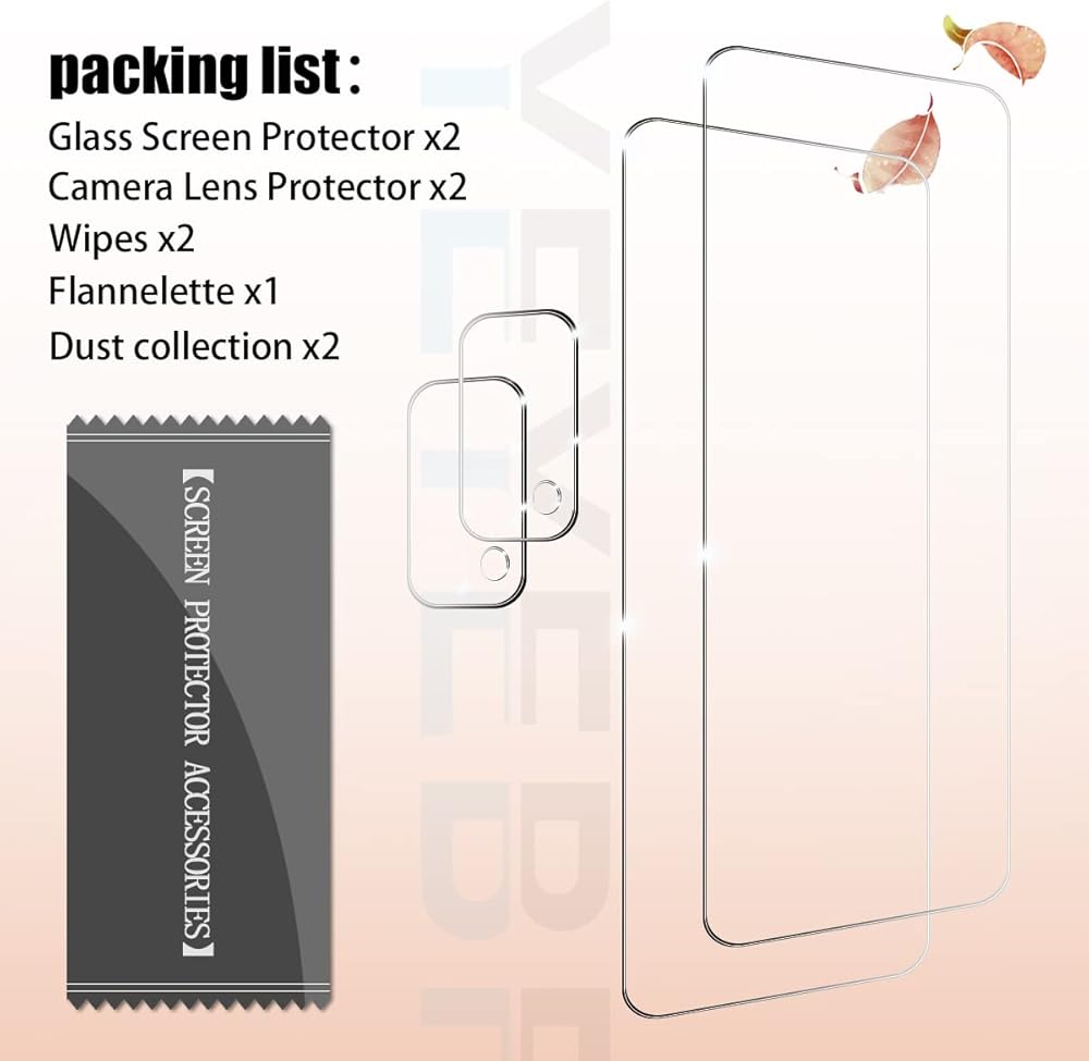 [ما تحصل عليه]: 2 × طبقة واقية للشاشة من الزجاج المقوى، 2 × واقيات شاشة عدسة الكاميرا، 2 × منديل تنظيف المعدات، 2 × قطعة قماش من المايكروفايبر، 2 × ملصقات الغبار. إذا كان المنتج به مشكلة، يرجى الاتصال بنا أولاً، ونقدم ضمان استبدال مجاني وضمان الرضا بنسبة 100%.