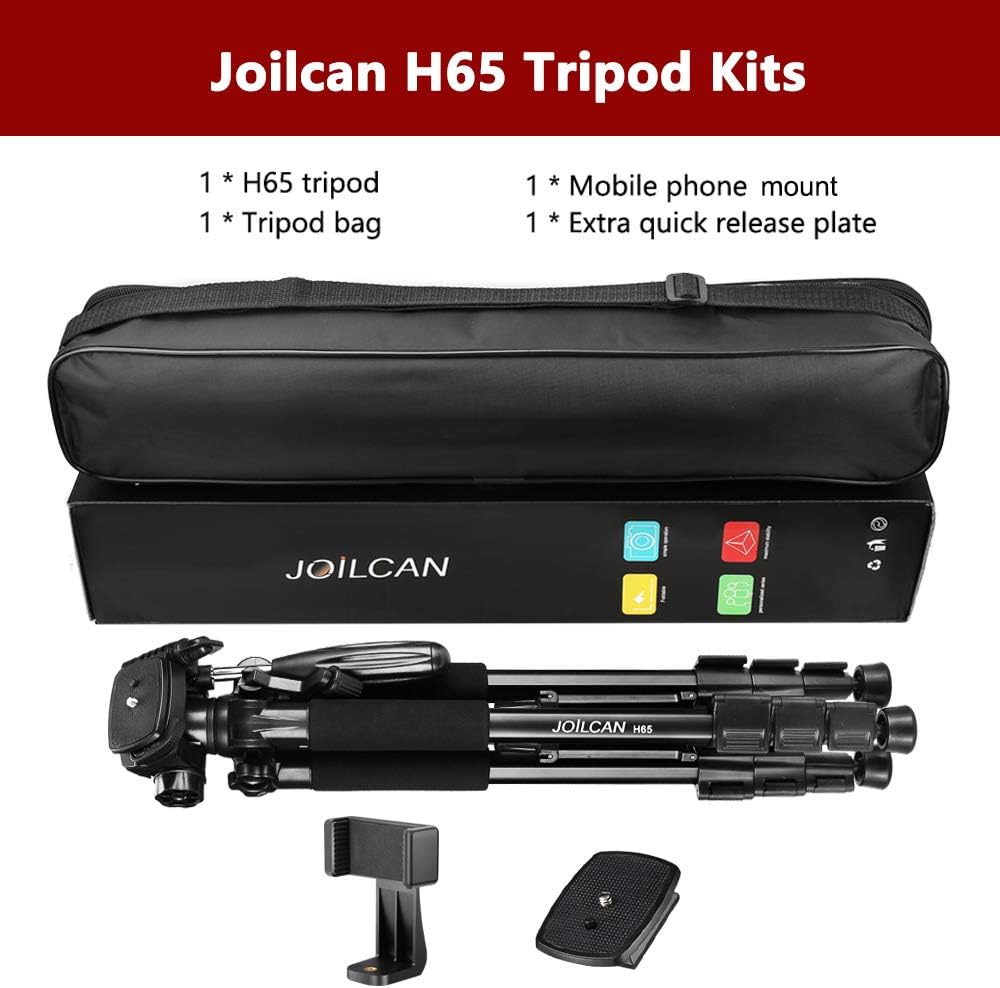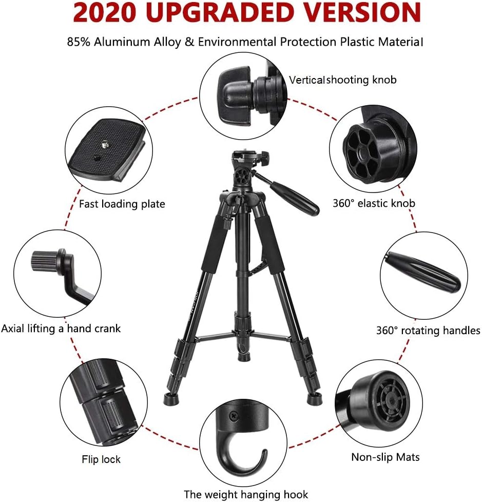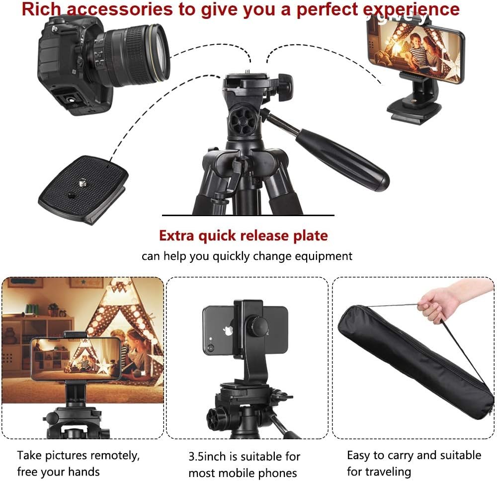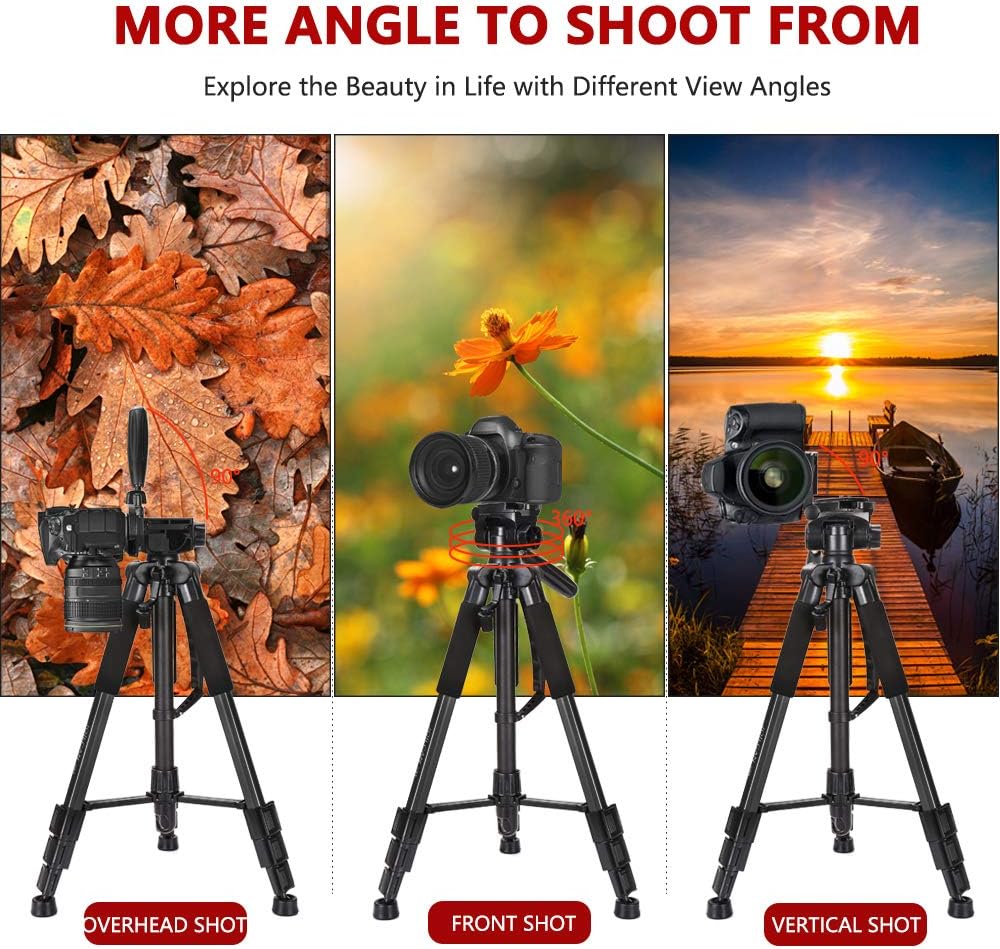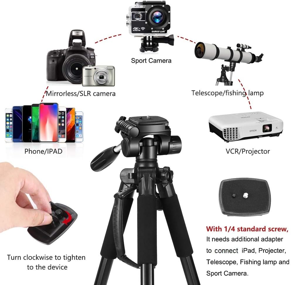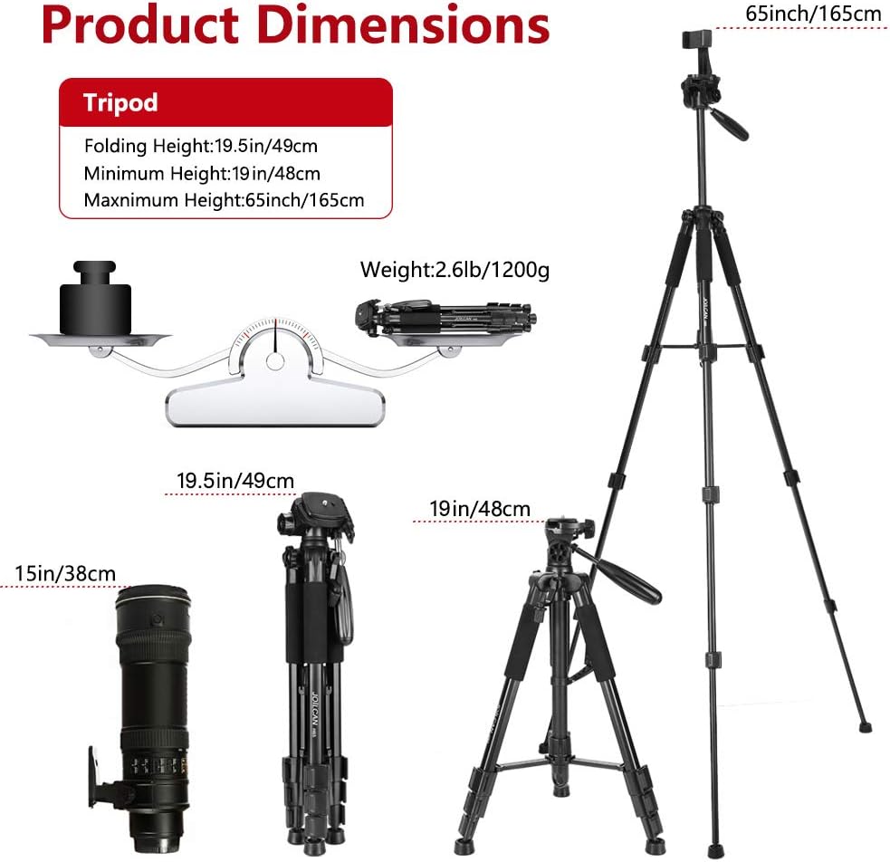 ZOMEI حامل ثلاثي للكاميرا مقاس 65 بوصة وخفيف الوزن وخفيف الوزن للسفر من الألومنيوم لكاميرا Canon Nikon مع لوحتين سريعتين وحامل هاتف عالمي بوزن 11 رطل (أسود)