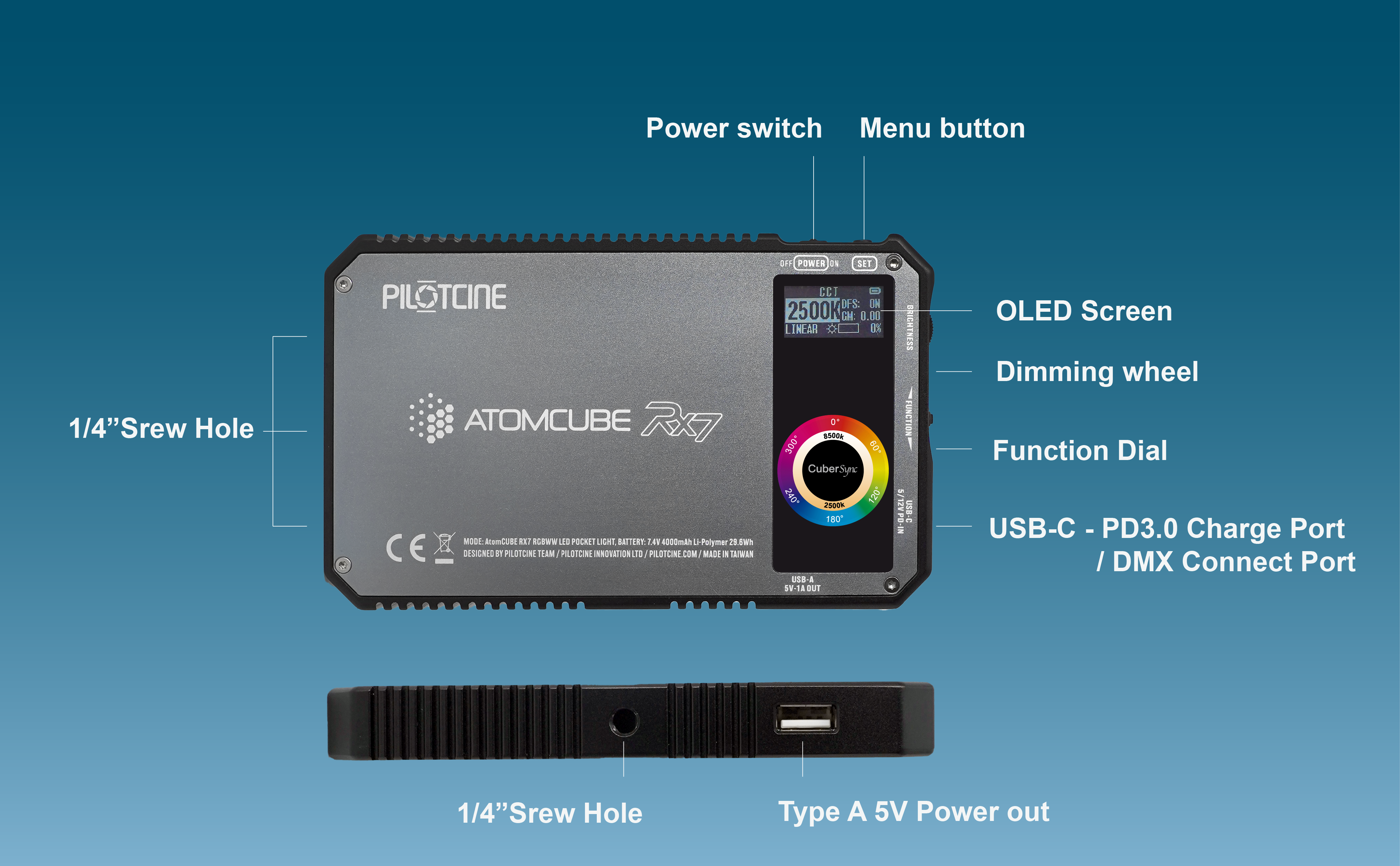 مصباح Atomcube RX7 18W Pocket RGBWW LED - شبكة الجيل الجديد، التحكم في التطبيق حتى 65535 جهازًا، DMX512، 15 سيناريو محدد مسبقًا، 5 FX مخصص، 2500K~8500K، CRI95+، TLCI99، تعديل اللون والتشبع.