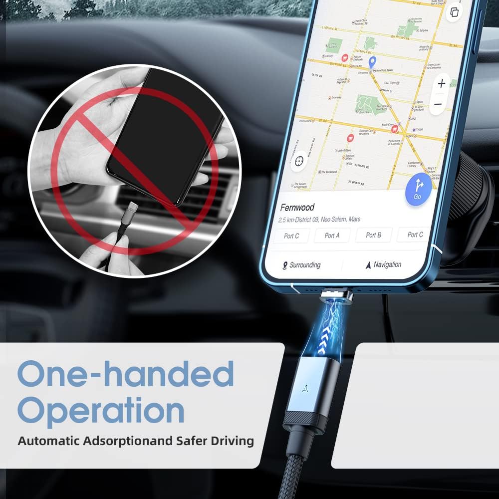 • موصل مغناطيسي قوي، كابل الشحن المغناطيسي من النوع سي هو نوع جديد من الشاحن المغناطيسي في السوق. باستخدام موصل 8 دبابيس، وهو أقوى مغناطيسي من كيبل USB المغناطيسي الآخر، ليس من السهل سقوطه. كابل شاحن الهاتف المغناطيسي لموبايل ايفون هذا أكثر استقرارًا ويدعم الشحن السريع. يمكنك استخدام يد واحدة لتشغيل كابل شحن جهازك لتشغيل / إيقاف الشحن، فهو مريح وآمن أثناء قيادة السيارة، إنه الخيار الأفضل للسائقين وكبار السن.