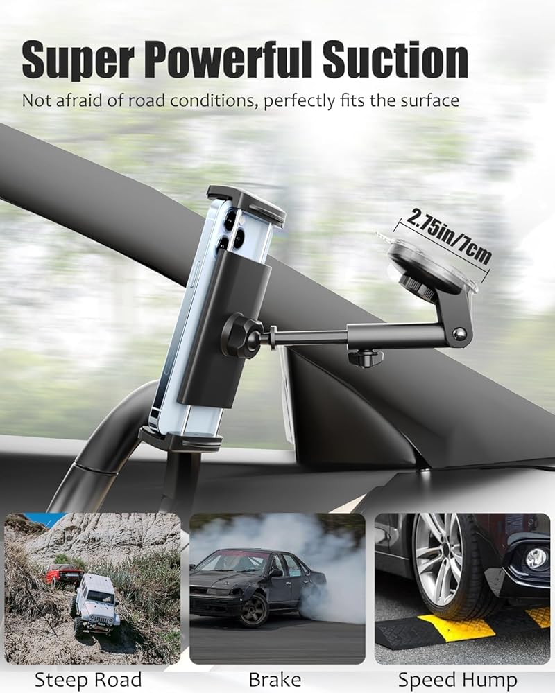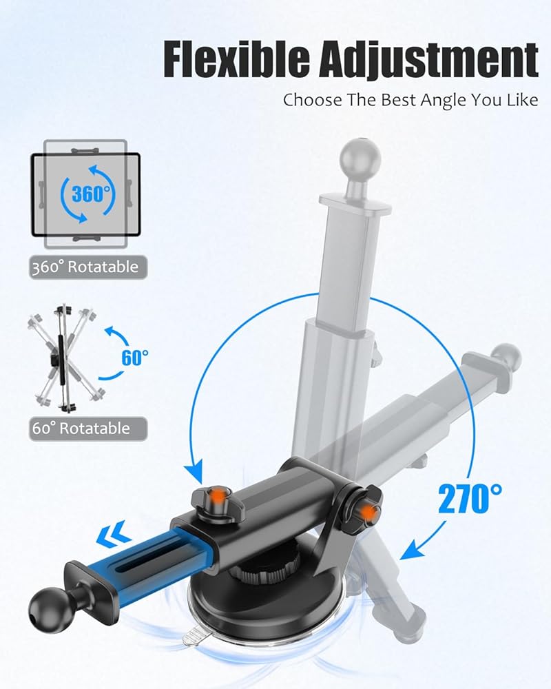 【تعديل متعدد الزوايا】يمكن تعديل حامل الهاتف ذو كوب الشفط بتصميم دوران 270 درجة، والذراع التليسكوبي يصل إلى 6.49 بوصة، ويدعم زوايا مختلفة وفقًا لاحتياجاتك، ويمكن لرأس الكرة العلوية أن تدور 360 درجة لتوفر لك أفضل زاوية رؤية (أفقية، رأسية، لأعلى ولأسفل)، حرر يديك، وحامل الكمبيوتر اللوحي للسيارة يسمح لك بالتركيز على القيادة.
