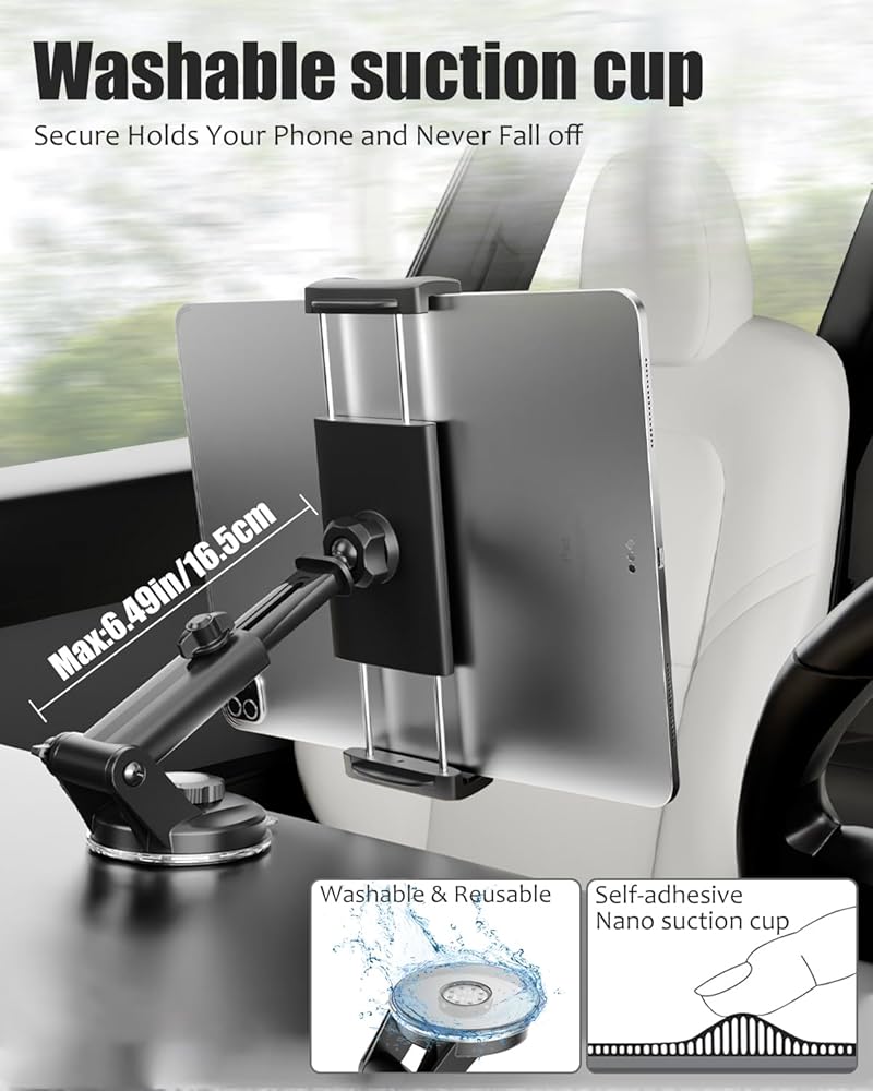 حامل الكمبيوتر اللوحي Wukanleng للوحة قيادة السيارة يناسب أجهزة 4-13 بوصة، حامل تابلت بذراع قابل للتعديل مع كوب شفط لشاحنة السيارة SUV متوافق مع iPad Pro 12.9/Air/Mini، Garmin، Samsung Galaxy Z
