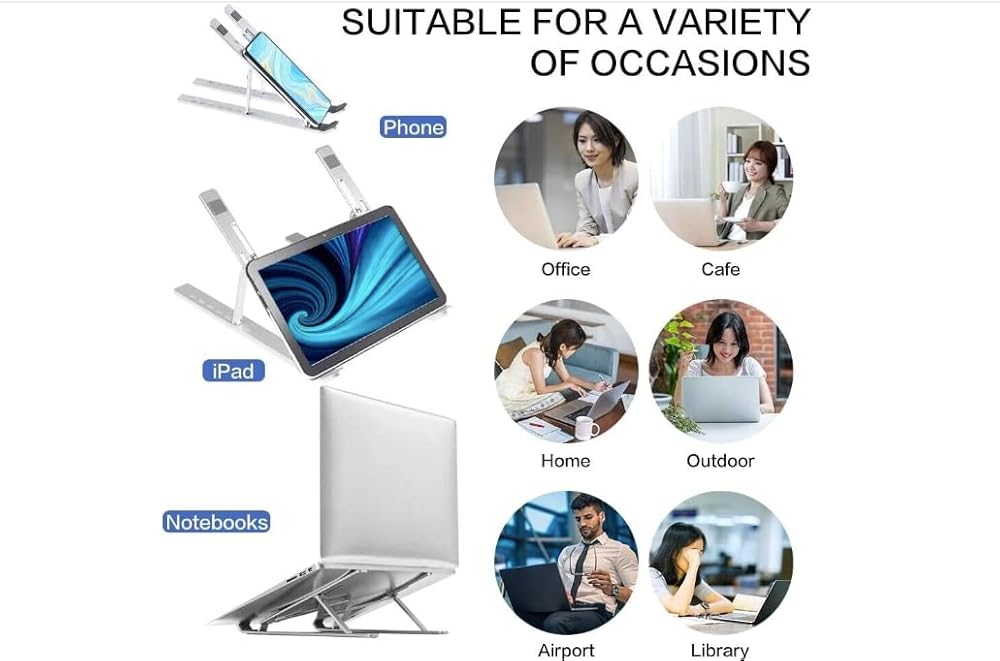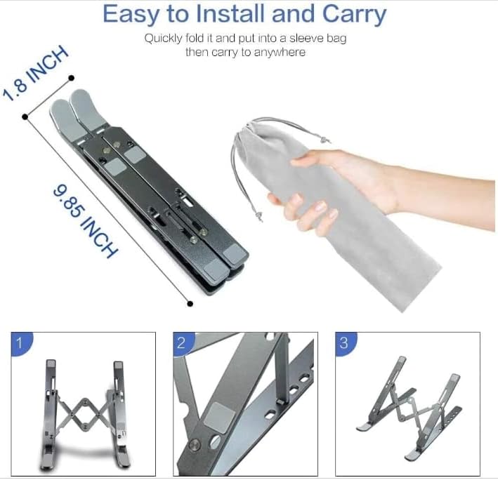 • صغير الحجم وقابل للحمل: لا يستغرق حامل اللاب توب هذا سوى 9.4 × 1.75 انش عند طيه، ويأتي مع حقيبة حمل يدوية للراحة أثناء التنقل.