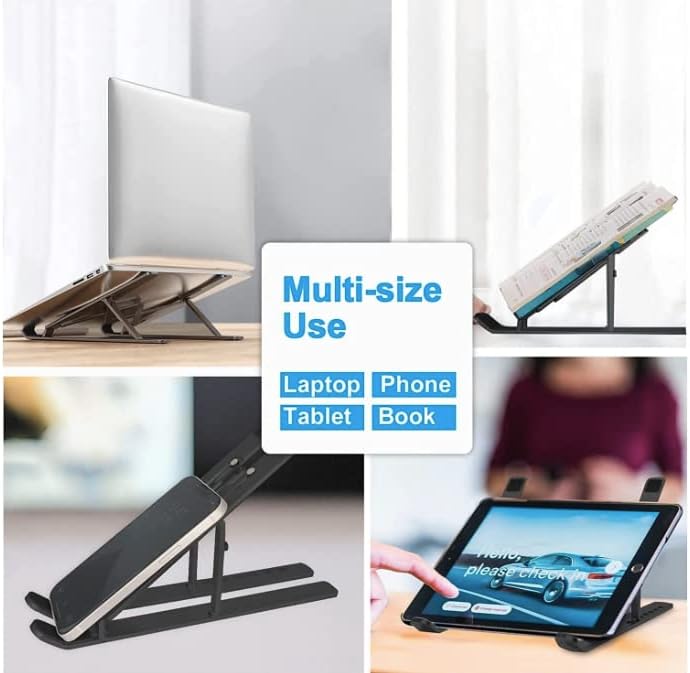 يمكن تعديل الارتفاع والزاوية، لذلك قد تجد الإعداد المثالي لاحتياجاتك الخاصة. إنه خفيف الوزن وسهل النقل بسبب تصميمه الذكي القابل للطي؛ عند طيه، يشغل حامل اللاب توب مساحة صغيرة جدًا ويمكن حمله في حقيبة صغيرة. إنها مفيدة في جميع أنحاء المنزل وفي المكتب وعلى الطريق وفي المتجر. حامل التابلت من البلاستيك، والجزء السفلي مجوف، والذي يمكنه تبديد الحرارة بسهولة للحفاظ على أجهزة اللاب توب والمعالج من ارتفاع درجة الحرارة. يتوافق حامل اللاب توب خفيف الوزن هذا مع معظم الأجهزة التي تتراوح أحجامها من 10 إلى 17 انش. ضغط أقل على الرقبة والكتفين والظهر بفضل تجربة مشاهدة وكتابة أكثر راحة. تتميز بشكل مثلث يجعلها قوية ومستقرة بما يكفي لدعم الكثير من الوزن. لن يتحرك الحامل بفضل الأقدام غير القابلة للانزلاق. ارسم واكتب واقرأ دون القلق بشأن التلطيخ. Es aable en altura y ángulo, por lo que puede encontrar la configuración perfecta para sus necesidades speciíficas. Es liviano y fácil de transportar gracias a su inteligente diseño plegable; cuando se pliega, el soporte para computadora portátil ocupa muy poco espacio y se puede transpar en una bolsa pequeña. Es útil en la casa, en la oficina, en la carretera y en la tienda. El soporte de la tableta es de plástico y la parte inferior es hueca, lo que puede disipar fácilmente el calor para evitar que el Hardware y el procesador de la computadora portátil se sobrecalienten. Este soporte liviano para computadora portátil es compatible con la mayoría de los dispositivos que varían en tamaño de 10 a 17 pulgadas. Menos tensión en el cuello, los hombros y la espalda gracias a una experiencia de visualización y escritura más cómoda. Tiene una forma triangle que lo hace lo suficientemente fuerte y estable para soportar mucho peso. El soporte no se moverá gracias a los pies antideslizantes. Dibuja, escribe y lee sin preocuparte por las manchas.