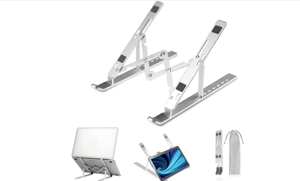 حامل لاب توب EW21 | حوامل لابتوب قابلة للتعديل، حامل لابتوب مريح من الالومنيوم، حوامل سطح المكتب المحمولة القابلة للطي، متوافقة مع ماك بوك والكمبيوتر - النوت بوك والتابلت وغيرها (فضي)