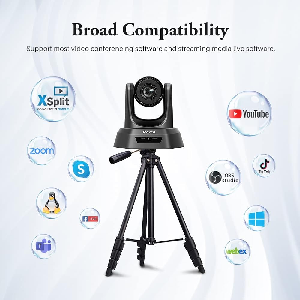 • تعمل الكاميرا مع Skype for Business وZoom وMicrosoft Team وGoogle Meet وCISCO وWebEx ومعظم منصات مؤتمرات الفيديو الأخرى. متوافق أيضًا مع برامج تحرير الفيديو والبث المباشر مثل OBS وXsplit وstreamlabs والخلاطات.