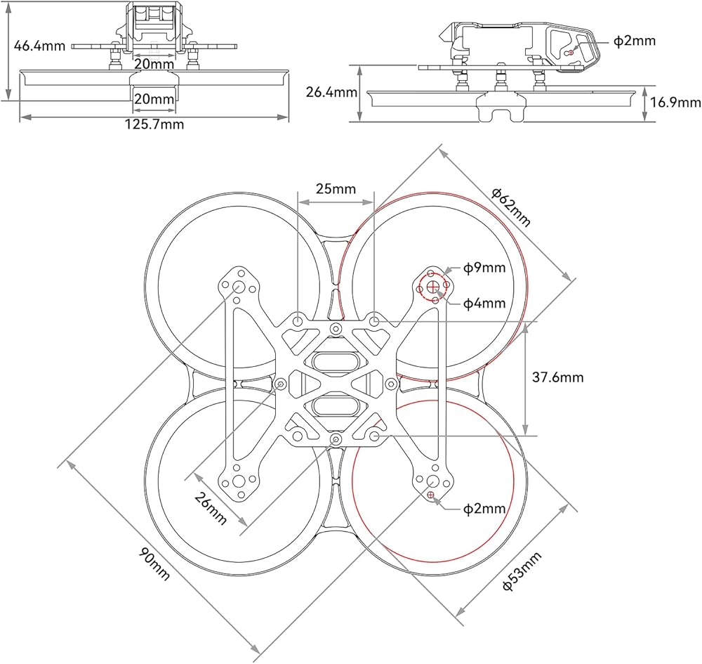 بيتا اف ابي اف اطار صوفي بدون فرش من بافو20 مع دعامة VTX رقمية HD وقاعدة عجلات 90 ملم، انبوب سميك PA12، تركيب بدون مجهود، مناسب لـ HD ديجيتال في تي اكس مثل وحدة الهواء دي جيه اي او 3 ورومكام لينك