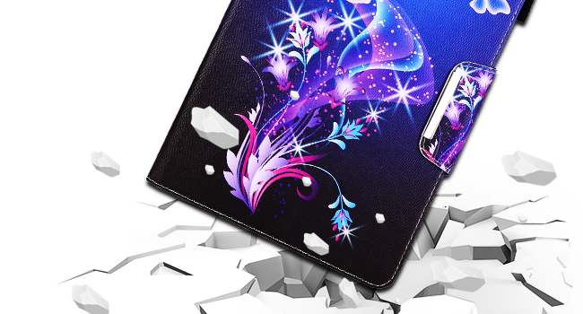 • وظيفة المسند: تم تصميم هذا الغطاء متعدد الوظائف بشكل فريد ليقلب للخلف ويحول الجراب إلى حامل عرض مريح، هذه القدرة تسمح للمشاهد باستخدام الجهاز اللوحي بدون استخدام اليدين مهما كان وضعك دون إجهاد
