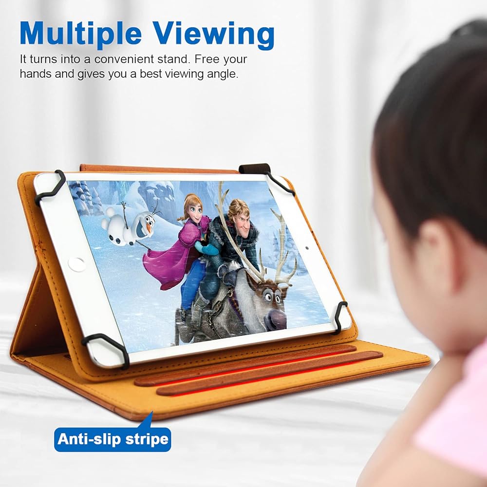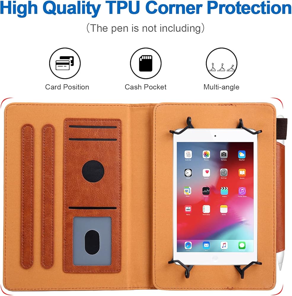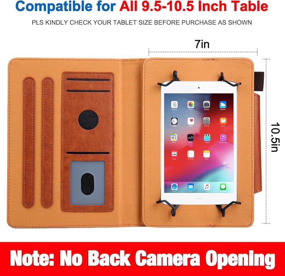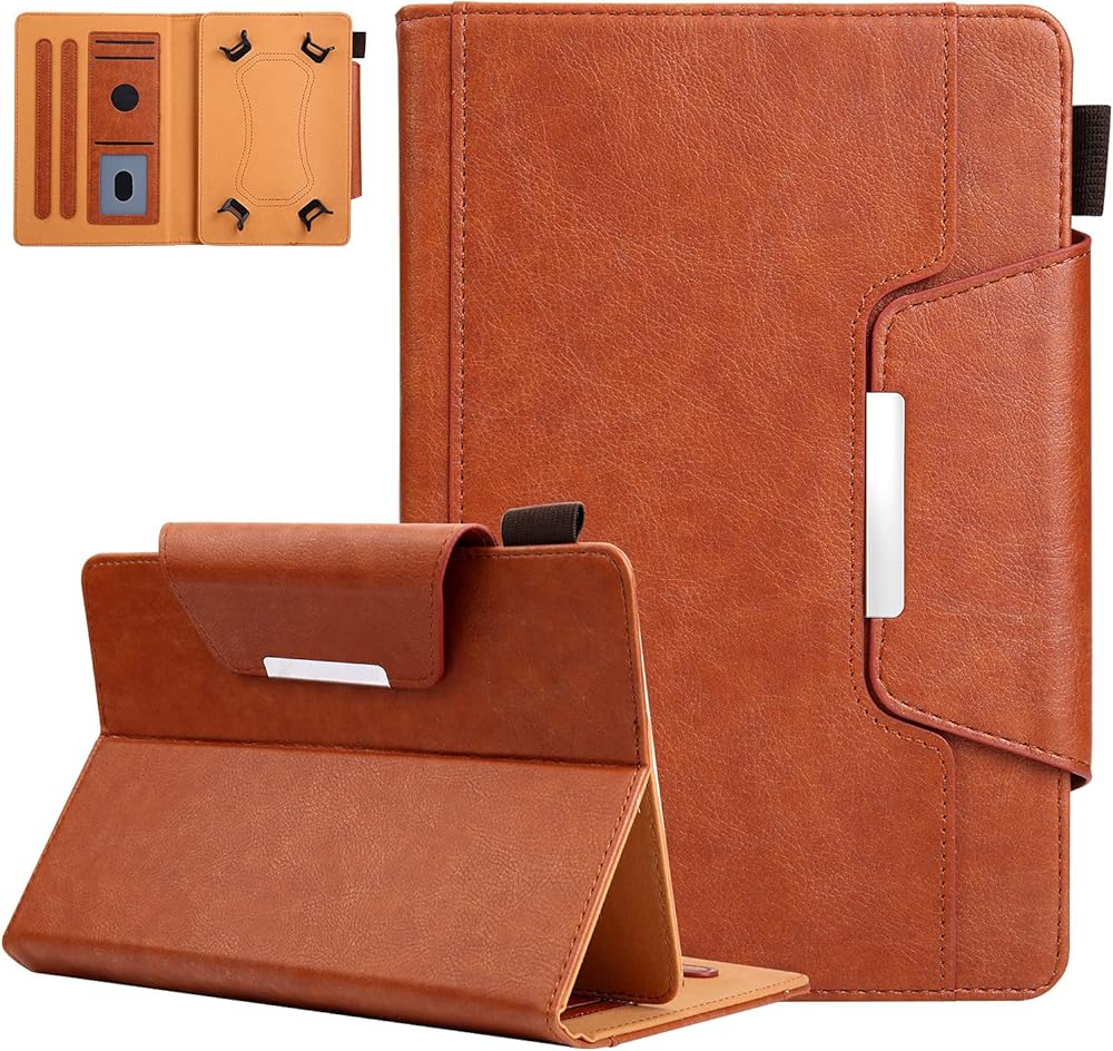 حافظة كمبيوتر لوحي JZCreater مقاس 10 بوصة، غطاء كمبيوتر لوحي Android عالمي مقاس 10 10.1 بوصة، حافظة حامل عرض متعدد الزوايا للكمبيوتر اللوحي مقاس 9.5-10.5 بوصة، بني كلاسيكي