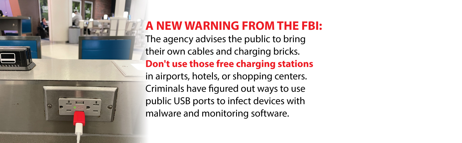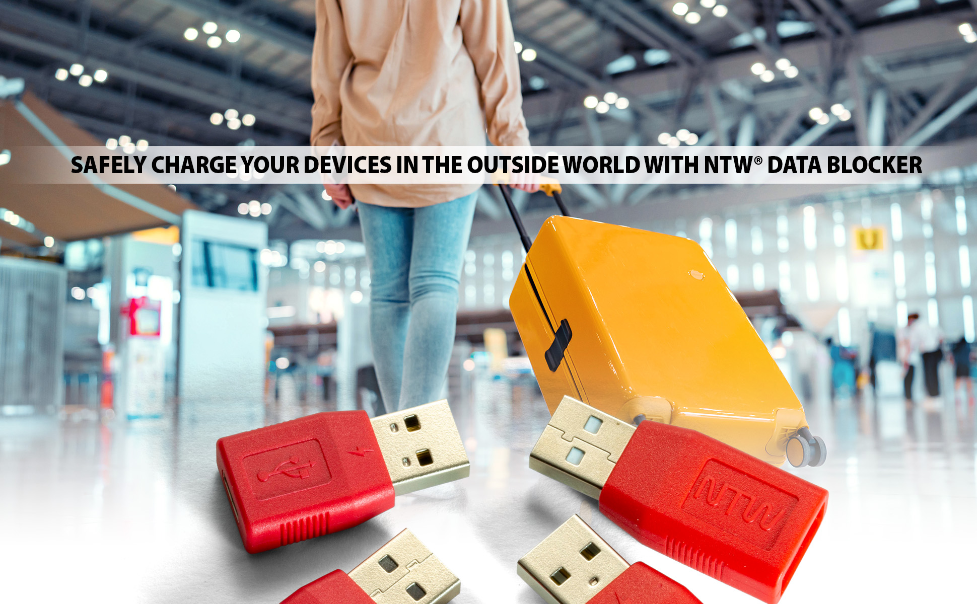 محول USB: يعمل محول USB للشحن الآمن من ان تي دبليو مع أي جهاز محمول يستخدم قابس USB قياسي للشحن، وهو متاح لـ: الهواتف الذكية التي تعمل بنظام Android وايفون / ايباد وجميع أجهزة التابلت. قد تشكل محطات الشحن العامة تهديدًا لأمن المعلومات المعروفة باسم جوس جاكينغ. يوفر محول يو اس بي للشحن الآمن أداة فعالة بنسبة 100% فقط للبيانات وحجب هذا هو التهديد رقم 1 لسرقة الهوية!
