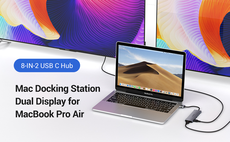 【قاعدة إرساء 8 في 2 لأجهزة الكمبيوتر المحمول MacBook】 شاشة مزدوجة لمحطة إرساء MacBook مصممة خصيصًا لأجهزة MacBook Pro 13 بوصة و15 بوصة و16 بوصة 2021-2016، وMacBook Air 2020-2018. قم بتحويل جهاز MacBook الخاص بك إلى 12 منفذًا: 2*4K 60 هرتز HDMI، 2* USB، قارئ بطاقات SD/TF، 100 وات PD، USB-C.