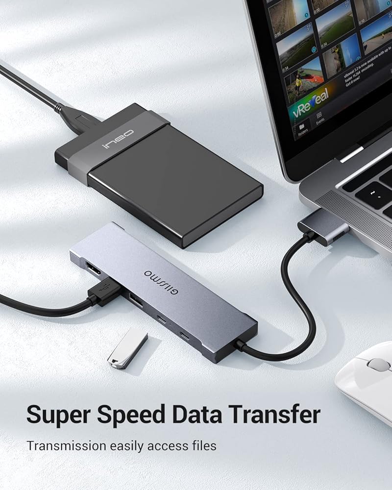 【نقل عالي السرعة وتوسع كبير】 تأتي قاعدة شحن MacBook هذه مع منفذي USB 3.0، وسرعات النقل الخاصة بها تصل إلى 5 جيجابت في الثانية و480 ميجابت في الثانية على التوالي. مع 2 منافذ USB 3.0 لتوصيل الهواتف الذكية والأجهزة اللوحية والأقراص الصلبة لنقل البيانات بسهولة باستخدام منفذ USB-C؛ ويوفر 2USB 2.0، سرعة تصل إلى 480 ميجابايت/ثانية، مما يسمح لك بتوصيل لوحة المفاتيح أو الماوس دون أي تأخير.
