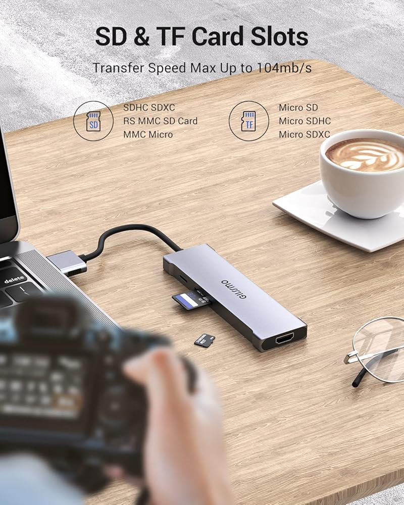 【قدرة قراءة وتوافق ممتازة】يوفر محول MacBook pro هذا مع فتحة بطاقة Micro SD/TF إمكانية قراءة البيانات ونقلها بسرعة (يمكن استخدام SD/TF في وقت واحد). قارئ بطاقة SD TF (سرعة تصل إلى 104 ميجابايت/ثانية) لأجهزة USB-C/Type-C/Thunderbolt 3 للوصول إلى الملفات من قارئ بطاقة SD/TF، عرض الصور أو مقاطع الفيديو بسرعة، مثالي للمصور أو المصمم أو محرر الفيديو ،إلخ.