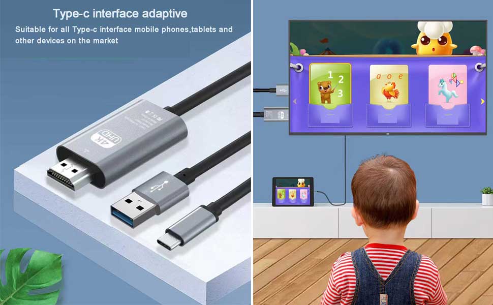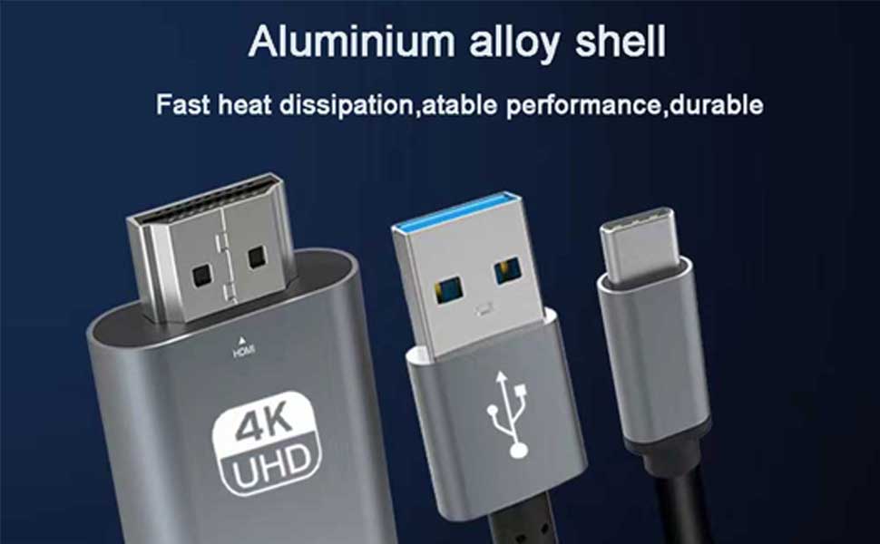 • 【4K Resolution 】this cable to HDMI support 4K HD image quality and stable transmission, achieving perfect synchronization of audio and video without delay or blur. The HDMI adapter lets you connect to any TV or display with an HDMI port to stream video in up to 4K resolution.The connector of this Type-C to HDMI cable is made of aviation aluminum alloy,provide durability and ensure stable signal transmission, ideal for you to experience stunning videos and images with no lag.