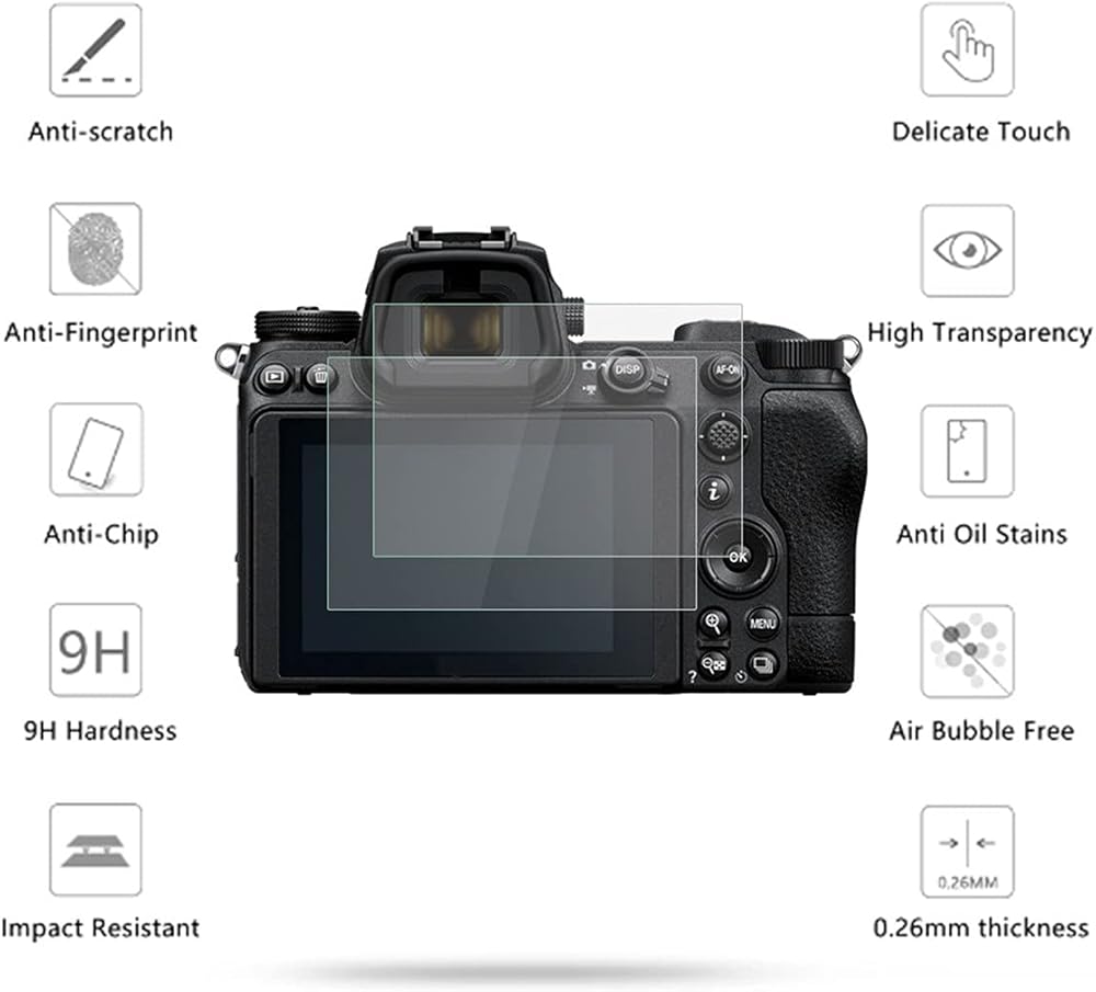 VIESUP [واقي شاشة من الزجاج المقسى مكون من قطعتين لهاتف Nikon Z6 II / Z7 II - فيلم واقي شاشة رفيع للغاية لكاميرا Nikon Z5 / Z6 / Z6 ii Z7 / Z7ii