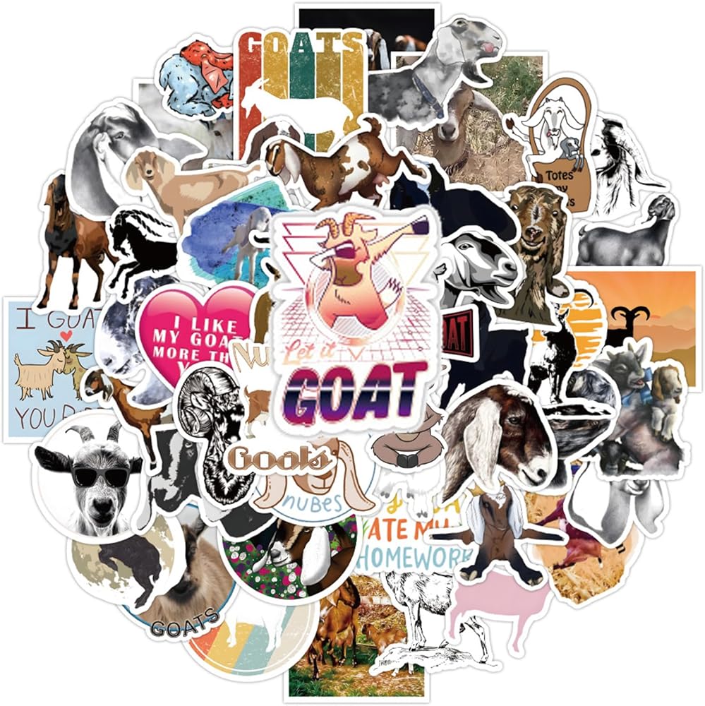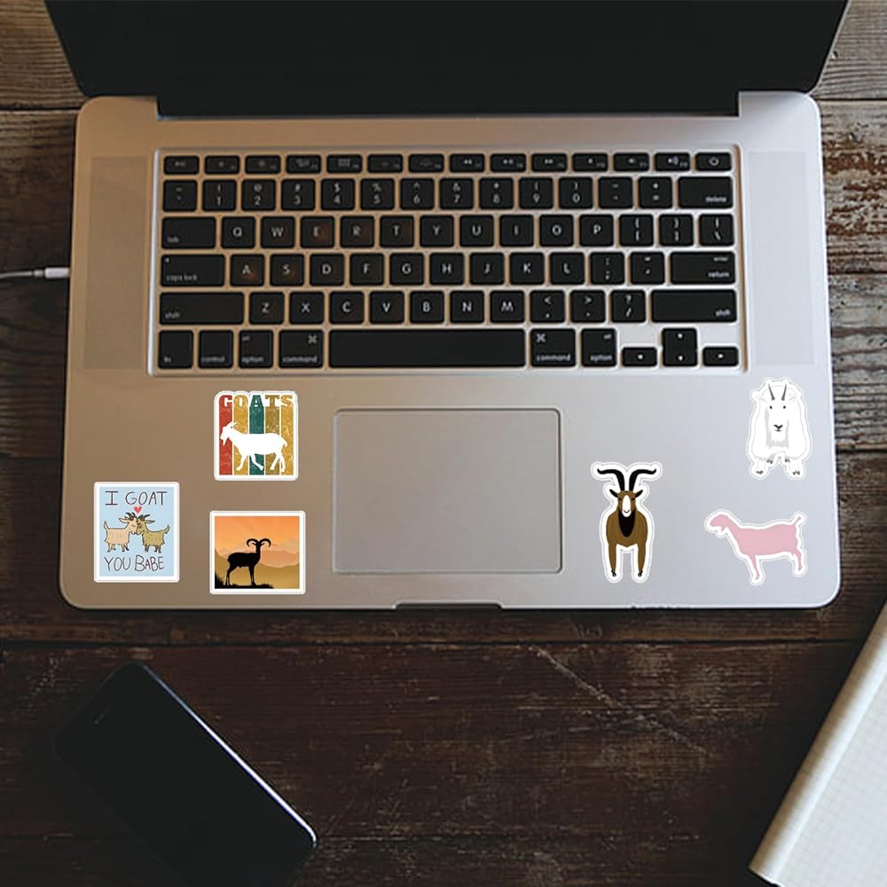 🐐 تصميم شخصي فريد: 50 قطعة من ملصقات الماعز المختلفة، مقاس كل منها 2-3 بوصات، مثالية لتزيين مساحتك!
