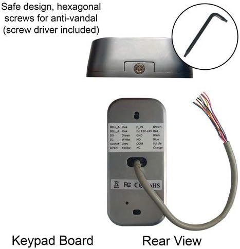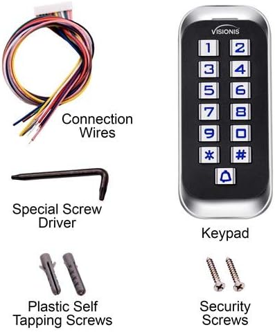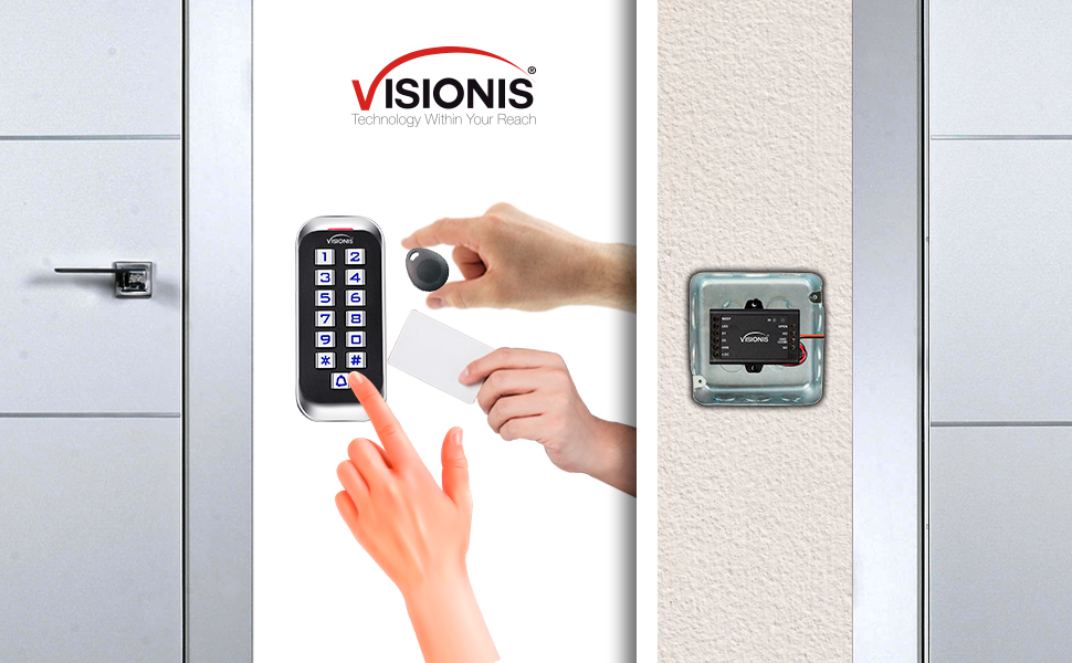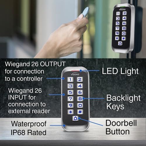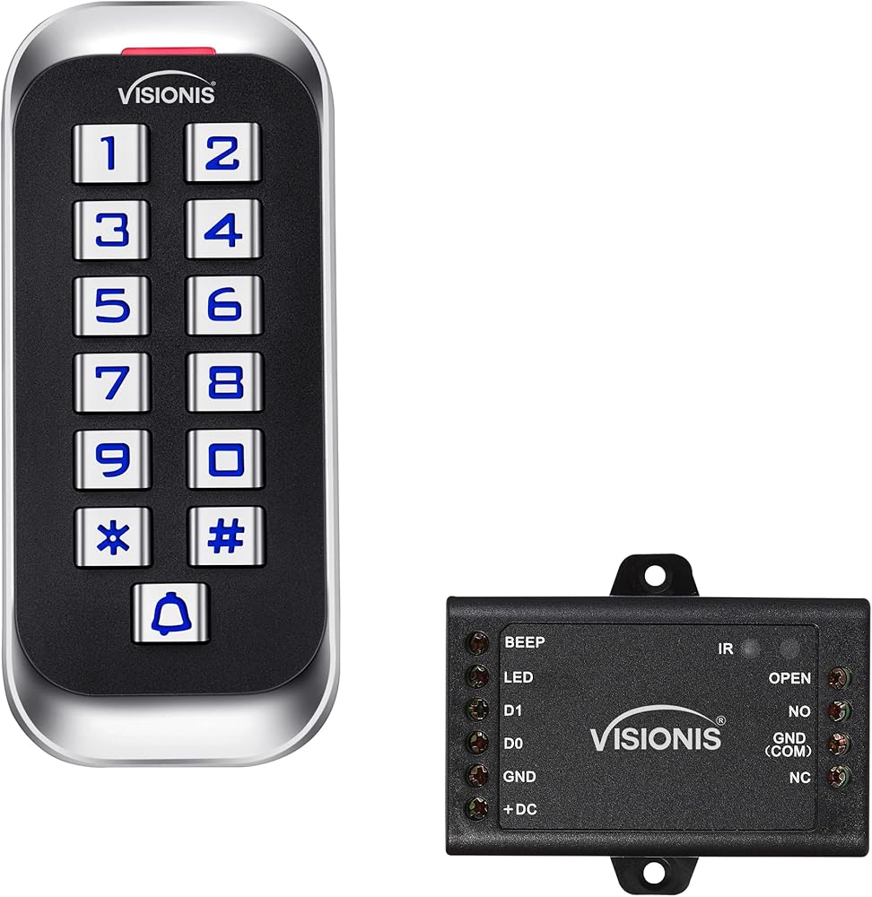Visionis VIS-3005 التحكم في الوصول داخلي + خارجي مصنف IP68 لوحة مفاتيح معدنية مضادة للتخريب + قارئ مستقل مع وحدة تحكم صغيرة + Wiegand 26، تصميم نحيف، بدون برامج، بطاقات EM، 1000 مستخدم