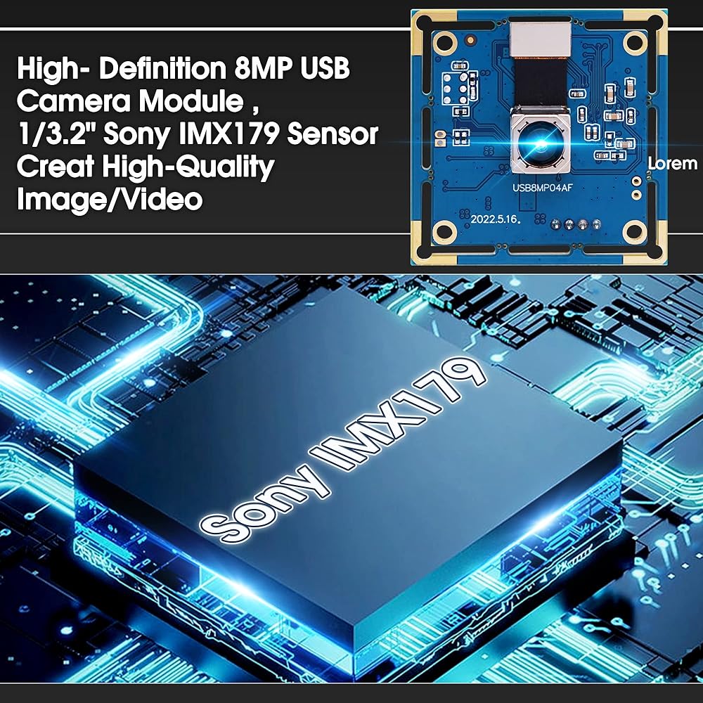 كاميرات ويب مستشعر الصور CMOS IMX179 مقاس 1/3.2 انش، جودة عالية وانحراف منخفض في إعادة إنتاج الألوان تنتج صورًا واضحة والمزيد من التفاصيل. تنسيق الصورة ام جيه بي اي جي أو واي يو اي 2 اختياري، يمكن استخدام الكاميرات ذات الدقة العالية في أي نظام فيديو شخصي أو صناعي.