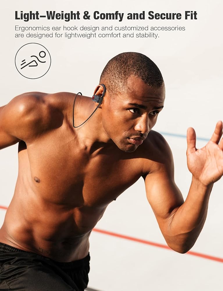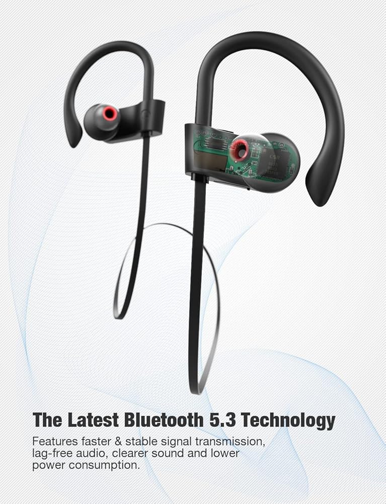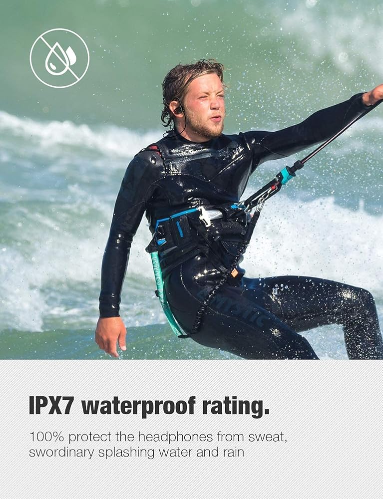 تصنيف IPX7 لمقاومة الماء: مع التصميم المريح وخطافات الأذن المصنوعة من السيليكون، فإن سماعات الرأس اللاسلكية تؤمن البقاء على أذنيك، وتشعر بالارتياح عند ارتدائها ولن تسقط أبدًا. تصنيف مُحسّن لمقاومة الماء، يمنع 100% رذاذ الماء والمطر العادي.