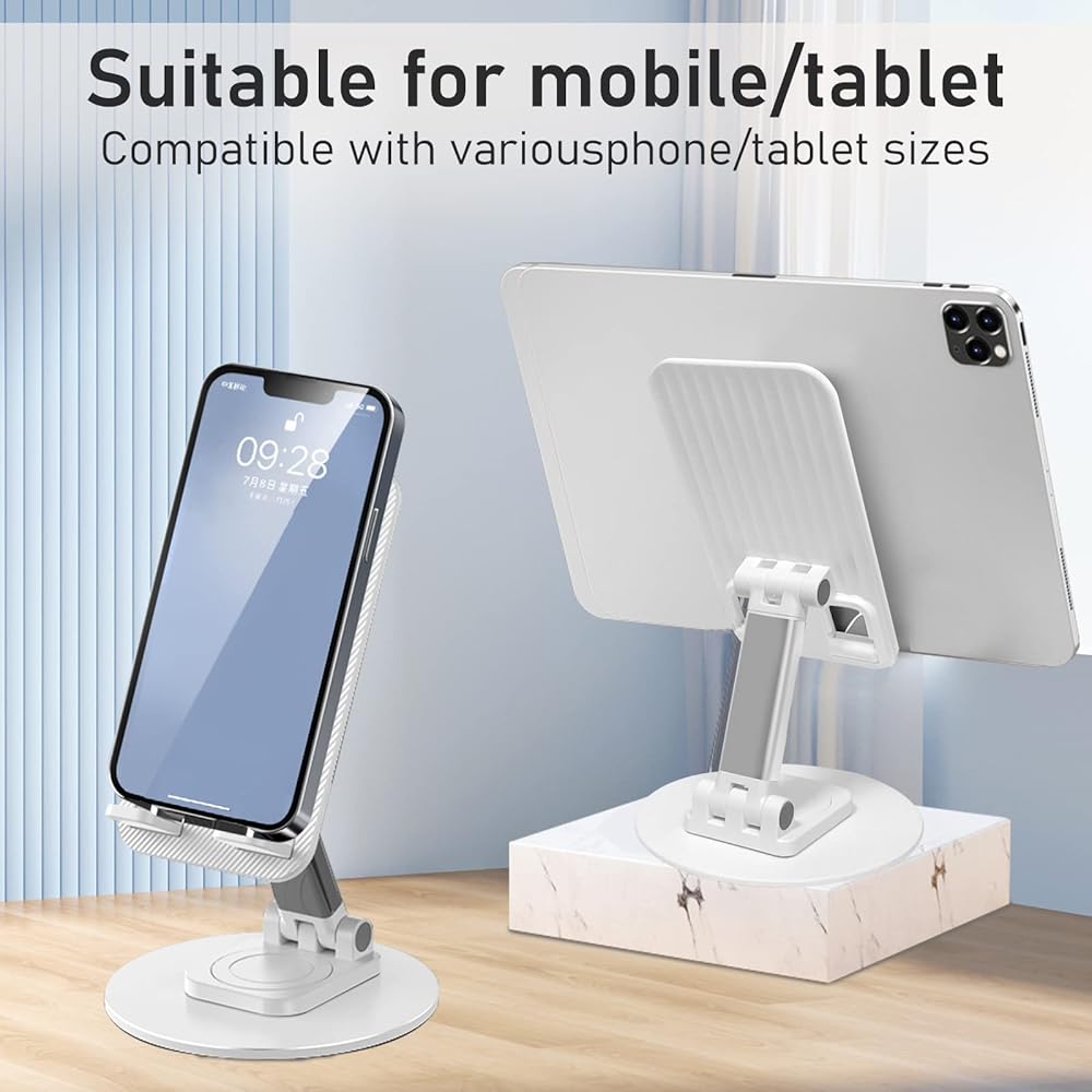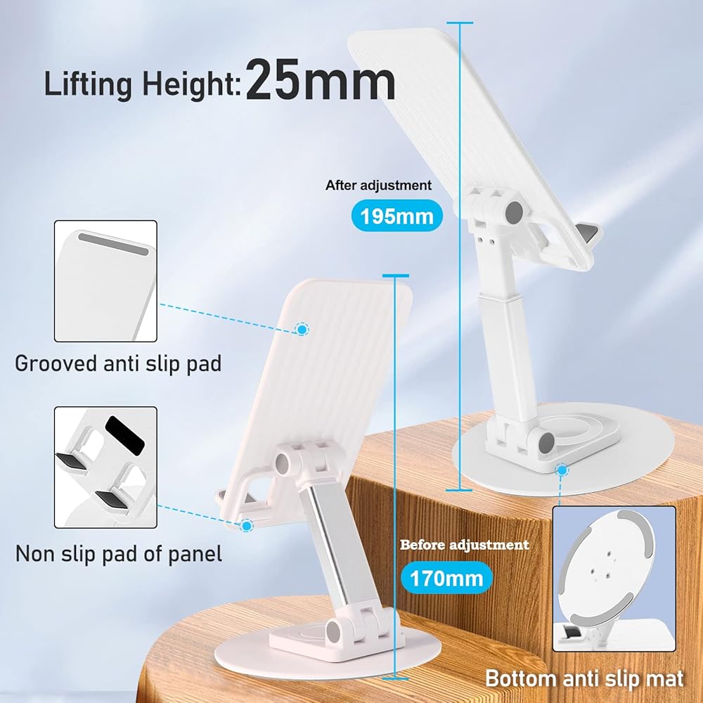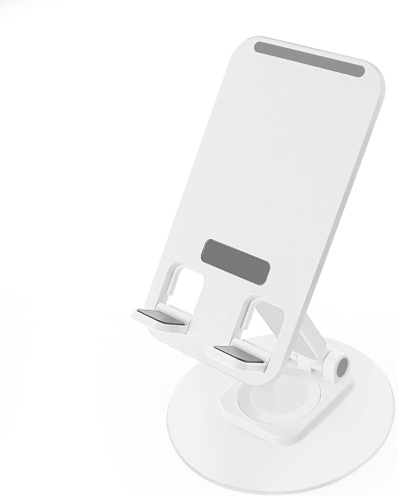 【Adjustable and flexible】The desk phone stand has a rotatable hinge for a wide range of angle adjustments, providing the perfect viewing angle for watching movies, shooting and reading, video calls.