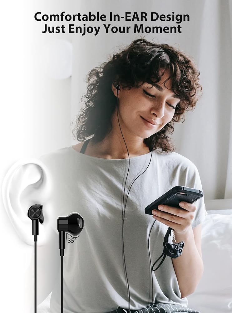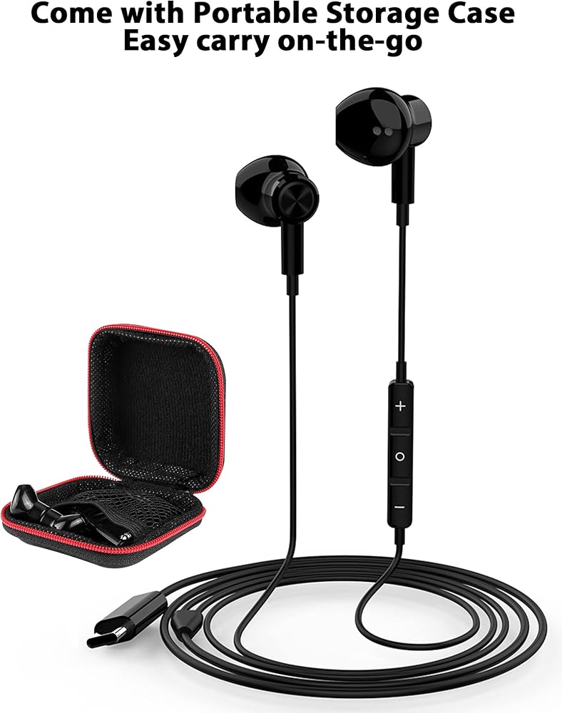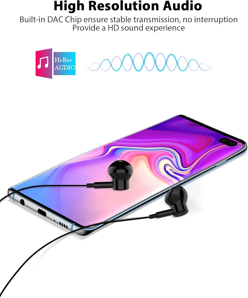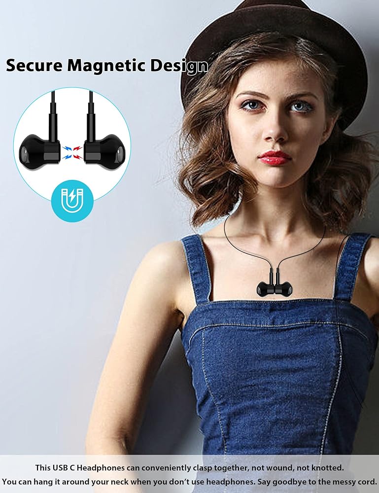 تصميم مغناطيسي وملاءمة مريحة: سماعات الأذن USB C مدمجة بمغناطيس قوي على الجزء الخلفي من سماعات الأذن، يسهل لفها وأخذها دون أي تشابك في الاستخدام اليومي. سماعات أذن من النوع سي مصممة هندسيًا وخفيفة الوزن للغاية تناسب الأذن بشكل مثالي.