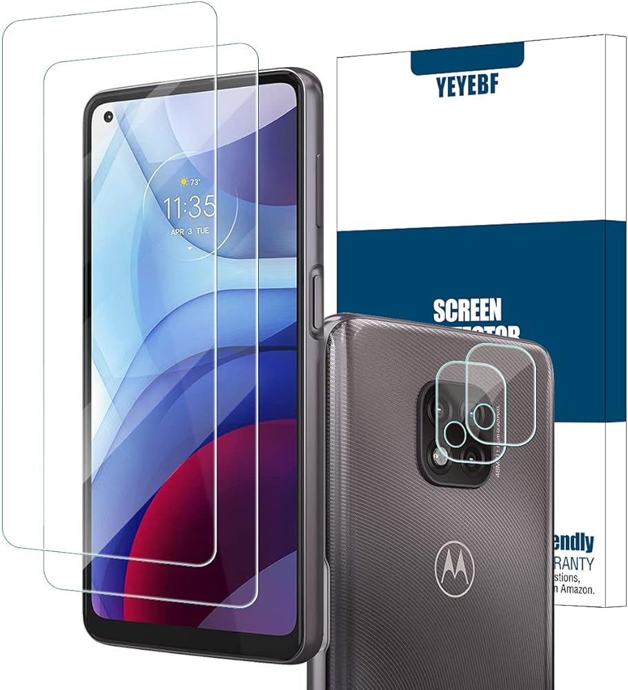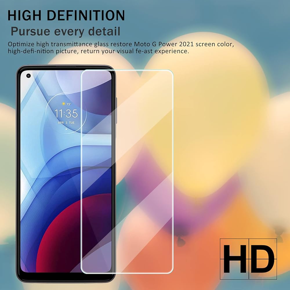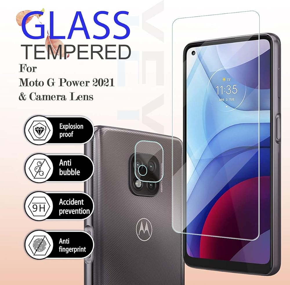 واقي شاشة موتو جي باور 2021 + واقيات عدسة الكاميرا من واي اي اي بي اف، [قطعتان] واقي شاشة من الزجاج المقسى [خالٍ من الفقاعات] [مناسب للحافظة] واقي شاشة زجاجي لهاتف موتورولا موتو جي باور 2021