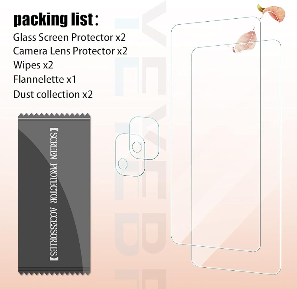 [ما تحصل عليه]: 2 × غشاء واقي للشاشة من الزجاج المقوى، 2 × واقي شاشة لعدسة الكاميرا، 2 × مناديل تنظيف المعدات، 2 × قطعة قماش من المايكروفايبر، 2 × ملصقات الغبار. إذا كان المنتج به مشكلة، فيُرجى الاتصال بنا أولاً، ونقدم ضمان استبدال مجاني وضمان الرضا بنسبة 100%.