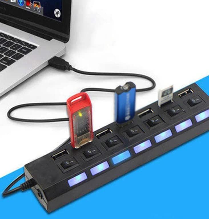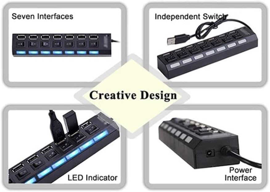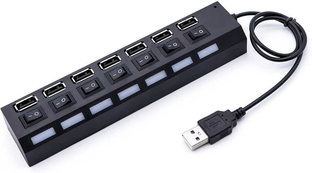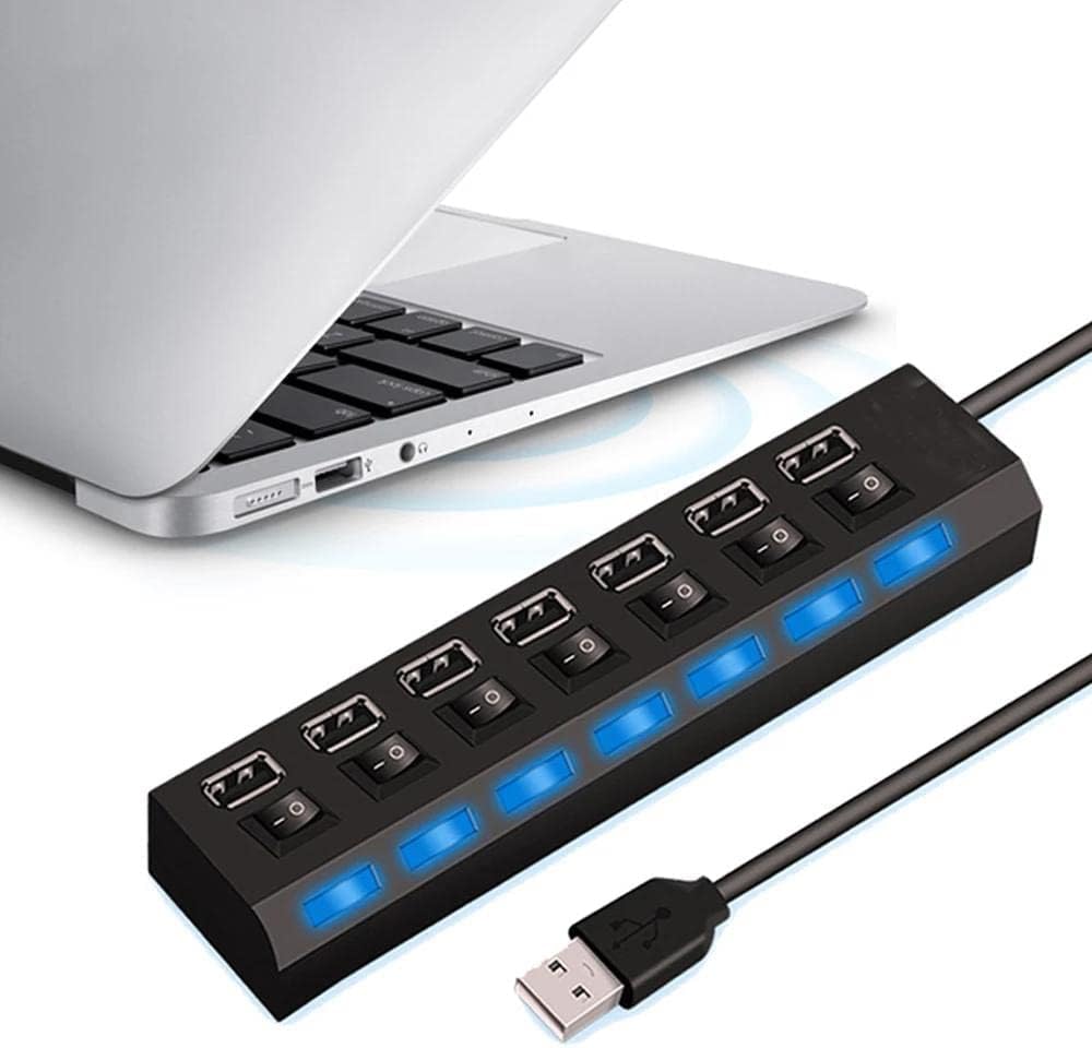 NARFIRE Home Office أسود ذو 7 فتحات USB متعدد الوظائف مع زر مستقل