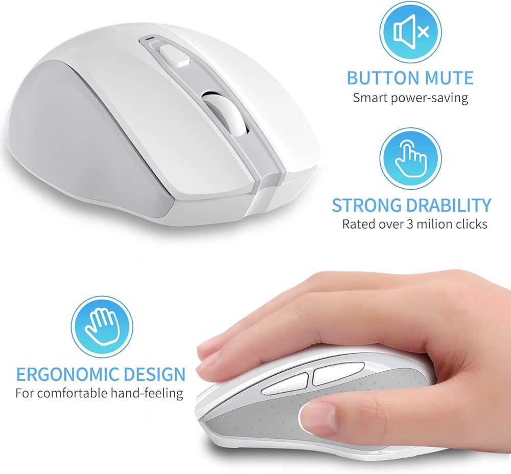 👍تنقل سلس مع نقرة أقل ضوضاء بالماوس - شكل محيطي ومقاوم للعرق ولمسة نهائية صديقة للبشرة لتوفير أقصى قدر من الراحة والدعم. أكثر هدوءًا وأسهل في النقر، يجعلك تركز على عملك دون إزعاج الآخرين بجانبك.