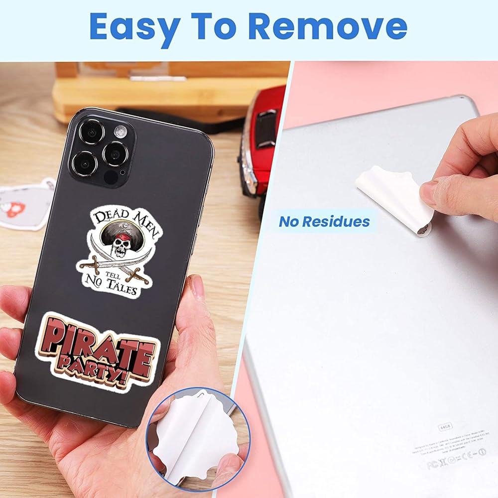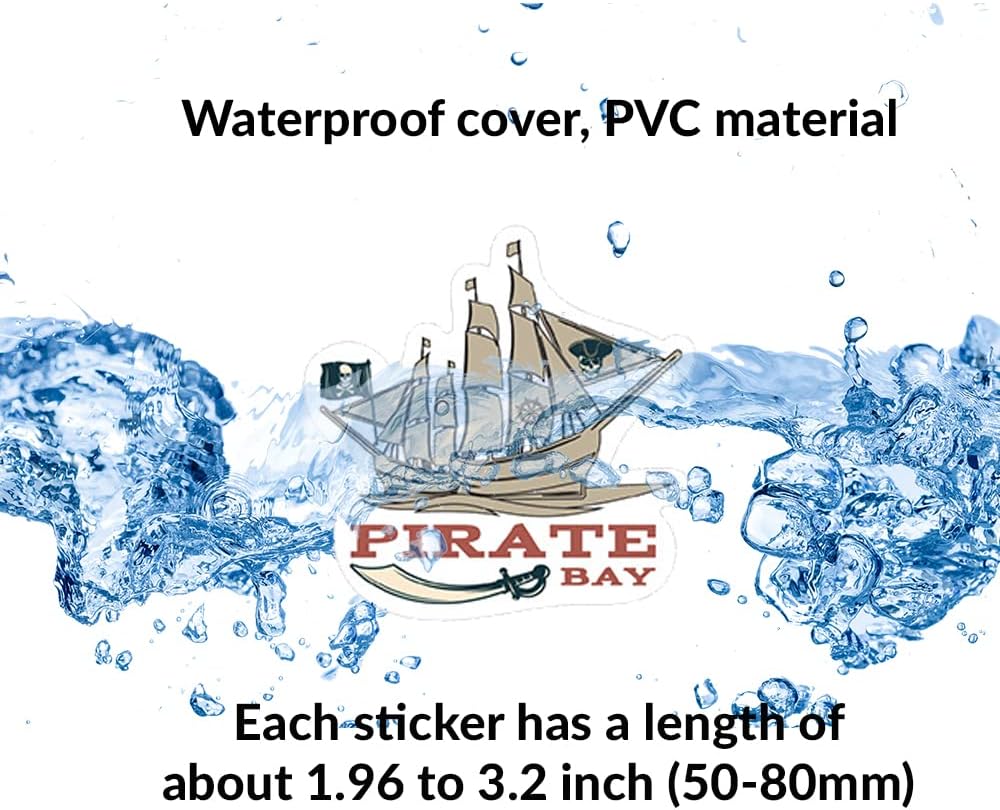 ⚓【Excellent Quality and Safety】: The materials used to create these pirate décor stickers do not contain harmful substances. All pirate decals made of high quality PVC with sun protection, dustproof and waterproof. In addition these stickers use no residue glue so you can replace it without any trouble. If leaving a little adhesive,easily clean up.