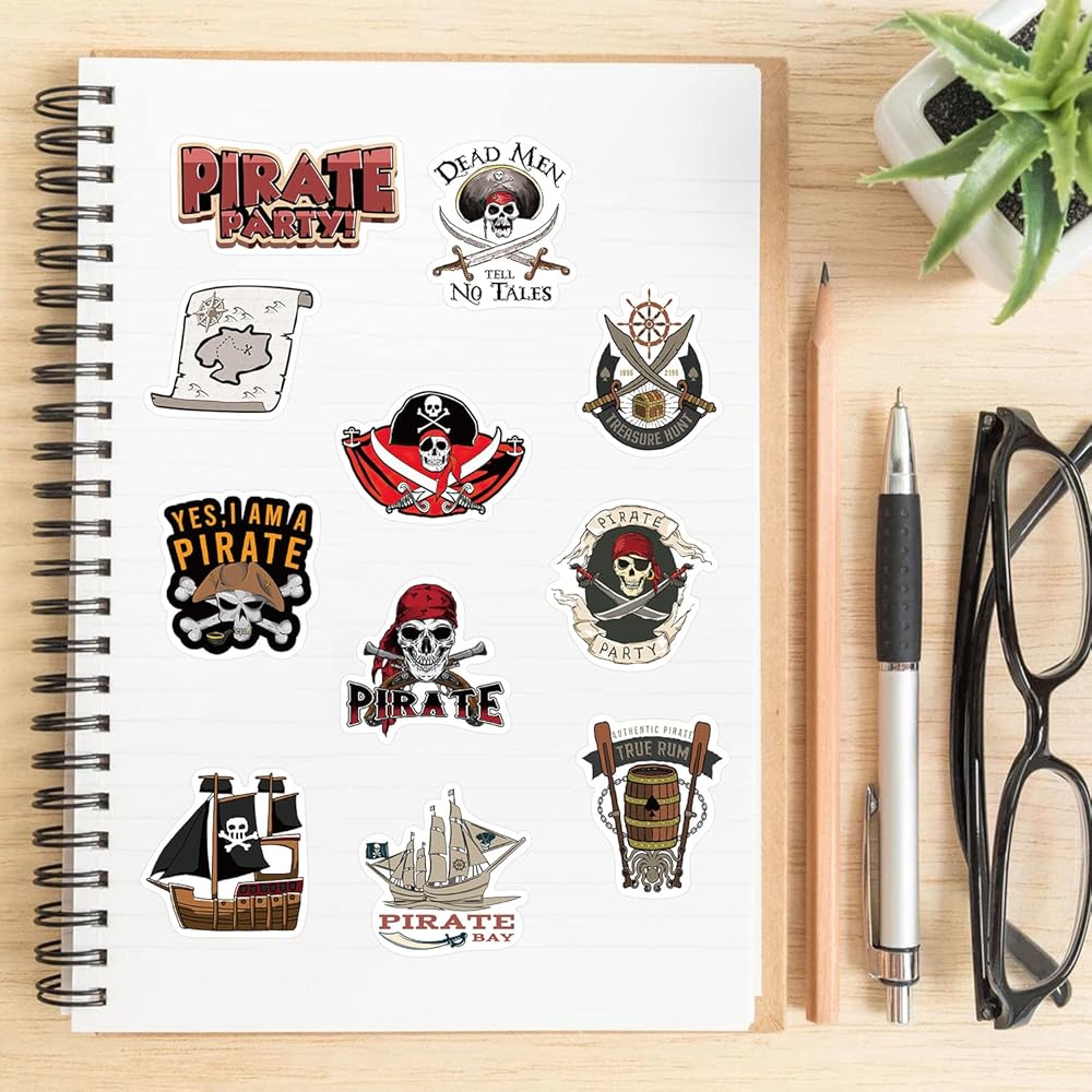 ⚓【pirate decorations】: This set includes 50 pcs different stickers are designed especially about pirate. You can find a lot of cool and funny image about pirate in this set.