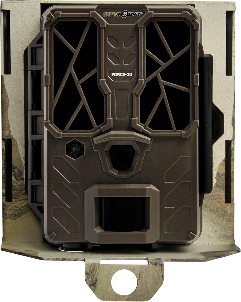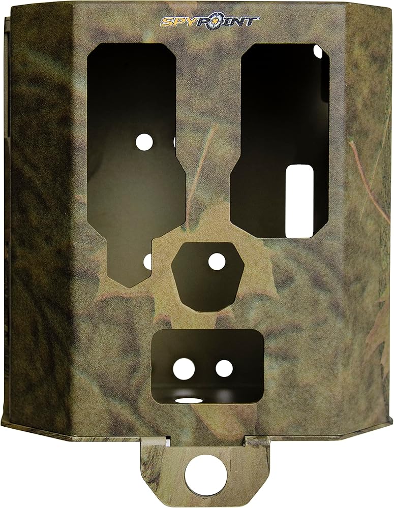 SPYPOINT CAMERA SUPPORT: Camouflaged Trail Camera zinc-coated, 16-gauge steel Security Box offers more security than simple cable locks from two or four-legged nuisances.can easily cameras to provide flexibility and support outdoors.