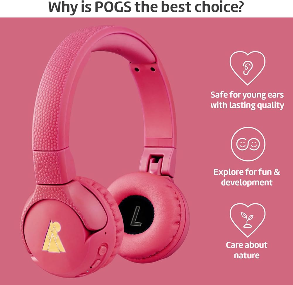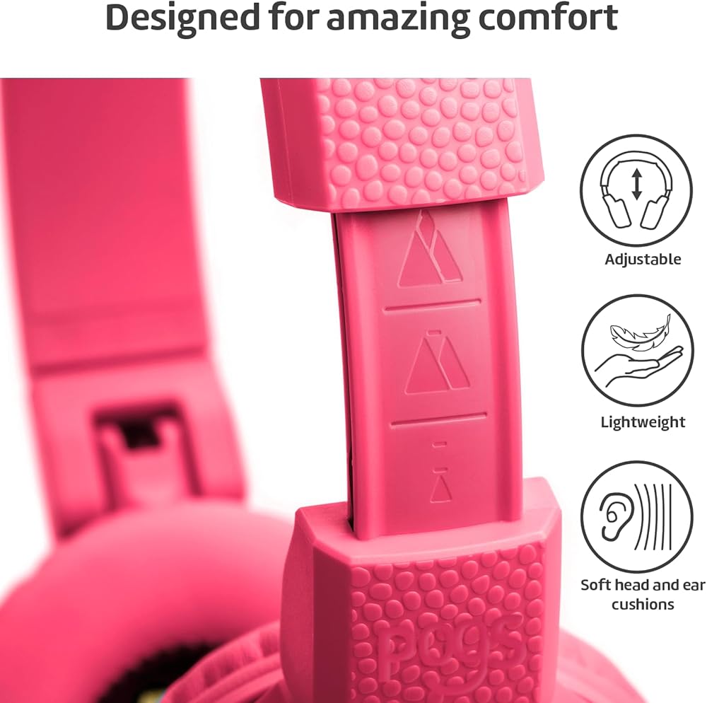 سماعات الرأس اللاسلكية بلوتوث للأطفال من POGS | أبو بريص 2 | سماعات رأس متينة وقابلة للطي للأطفال بعمر 3+ | حجم محدود 85 ديسيبل، ميكروفون | على الأذن | وظيفة مشاركة الموسيقى لاسلكيًا (rPink)