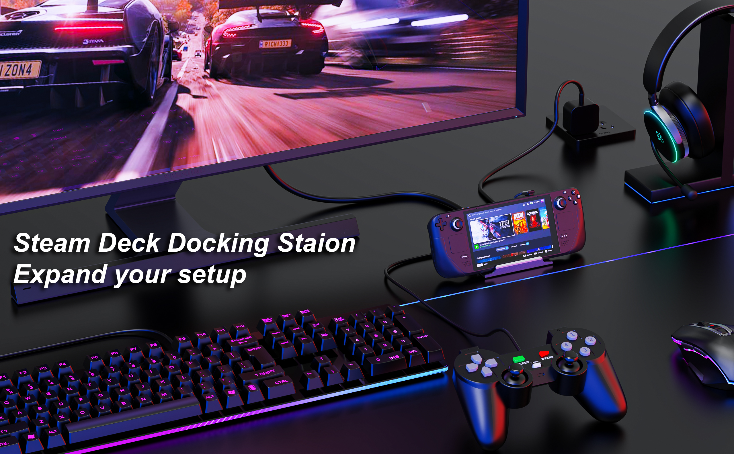 【واحد يكفي】مزود بمخرج HDMI 4K عند 60 هرتز، مدخل جيجابت ايثرنت، USB-C 3.0، 2 منفذ USB-A 3.0 ومنفذ USB-C للشحن، لديك كل ما تحتاجه على الإطلاق. مما يتيح لك استكشاف طريقة جديدة للعب مع ستيم ديك.