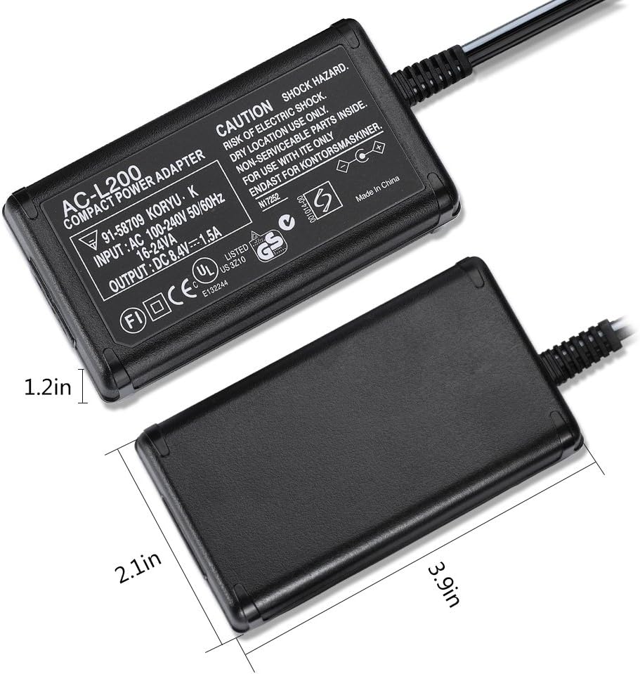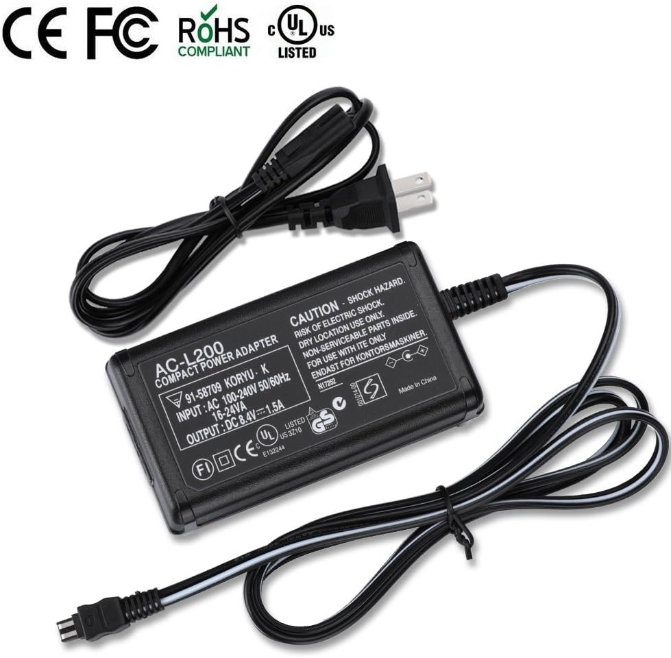 شاحن محول طاقة تيار متردد متوافق مع سوني Handycam DCR-SX40 DCR-SX44 DCR-SX45 DCR-SX63 DCR-SX65 DCR-SX85 DCR-SR42 DCR-SR45 DCR-SR46 DCR-SR47 DCR-SR62 DCR-SR68 DCR-SR200 DCR-SR300 كاميرا الفيديو الرقمية