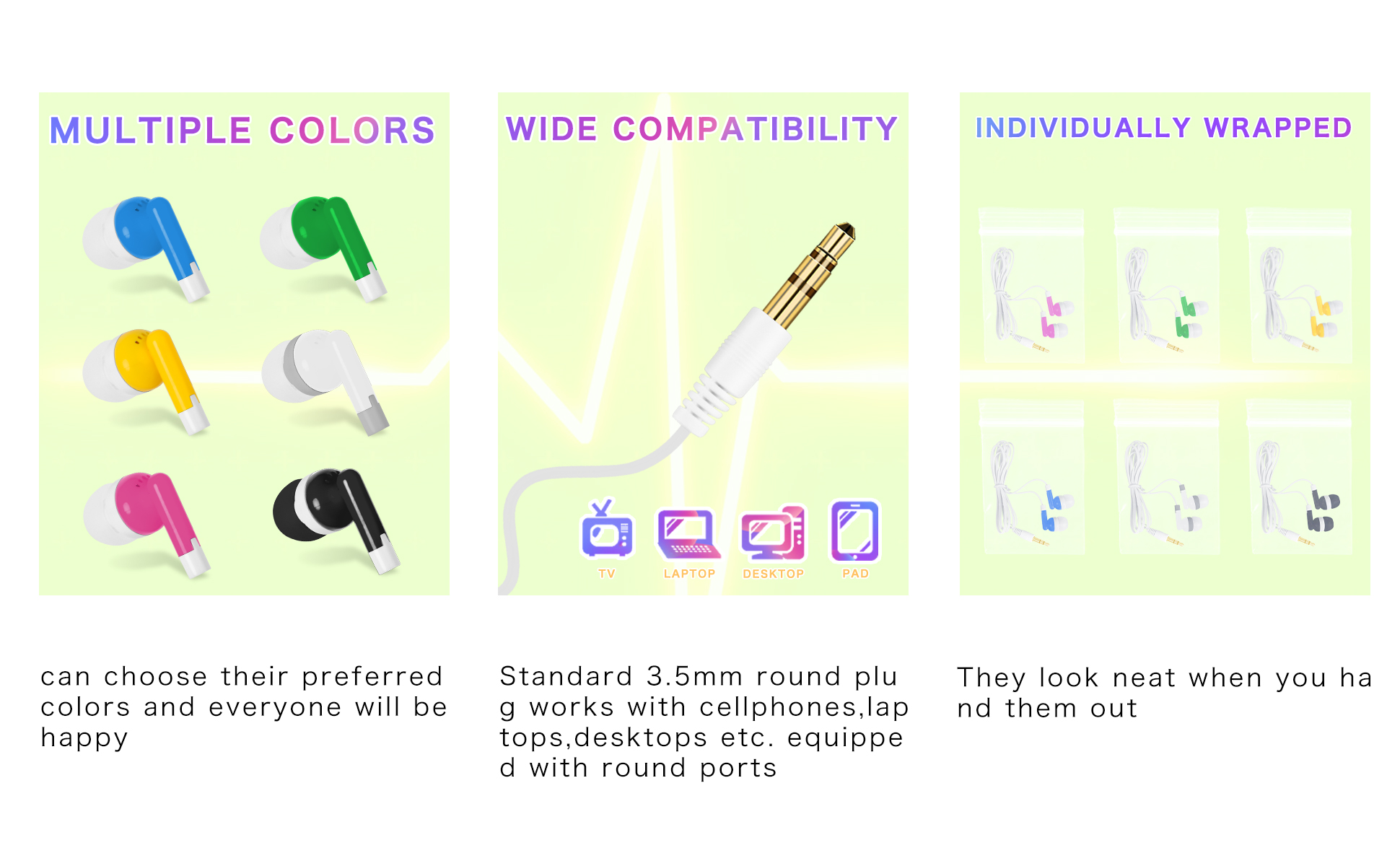 INDIVIDUALLY WRAPPED --- Make every earphone look like a gift when you hand them out! (Every pair of ear buds is packed in a separate bag)