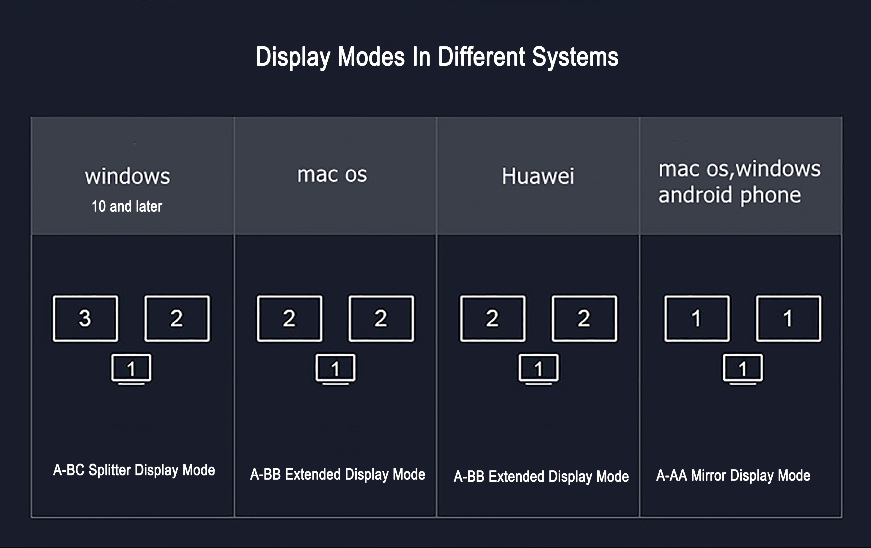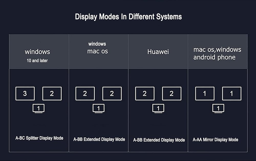 This USB C to Dual HDMI Adapter supports both SST and MST mode: Triple display for your Windows laptops and Android smartphones. Please note that Apple OS only supports mirror mode without triple display.