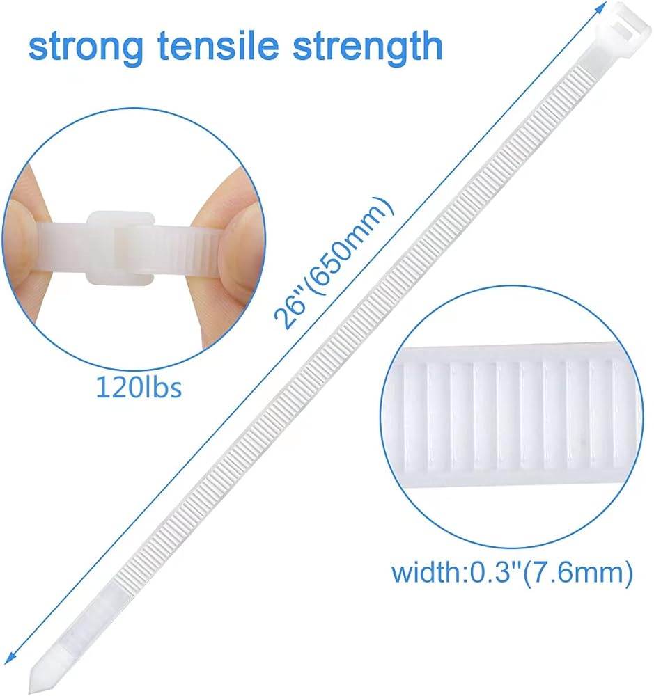 روابط كبل من النايلون ذاتية الغلق بسحاب شديدة التحمل 50 حزمة (26 بوصة، أبيض)