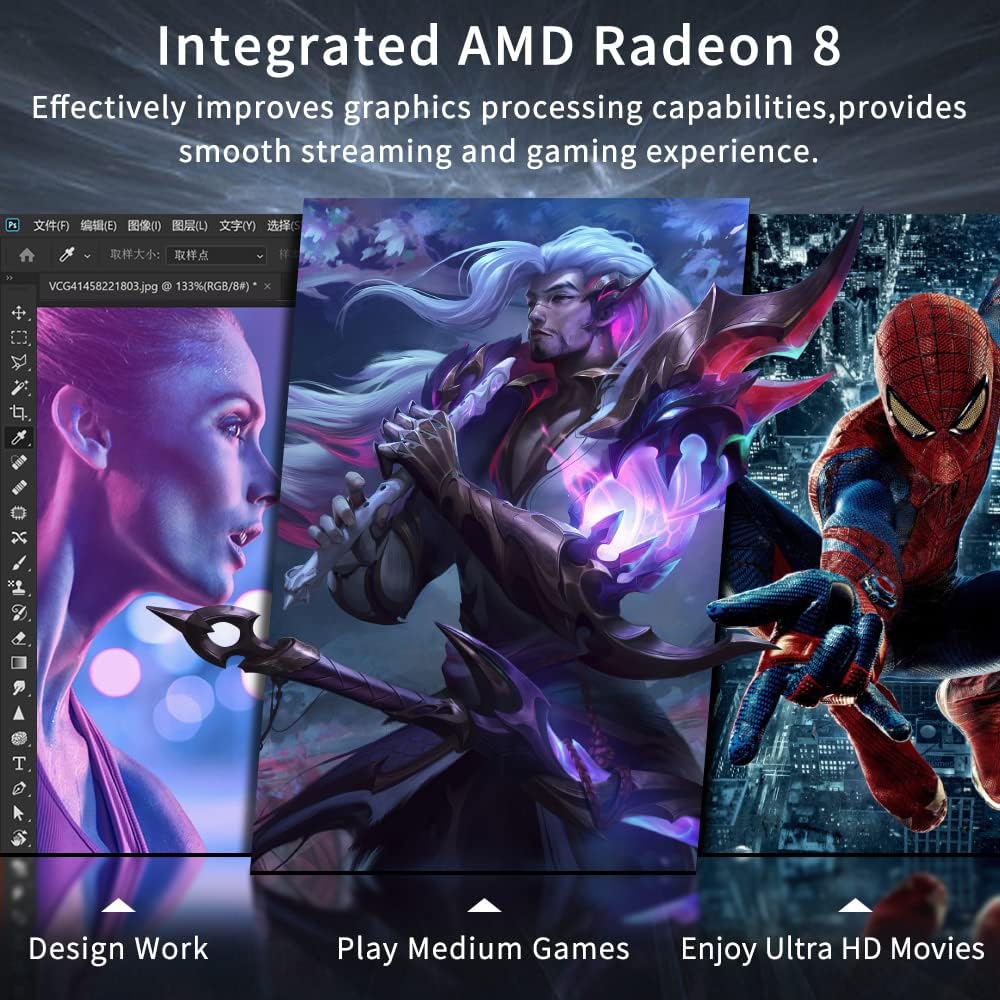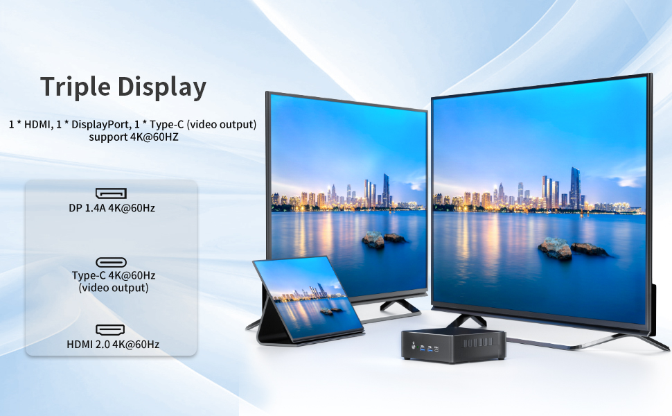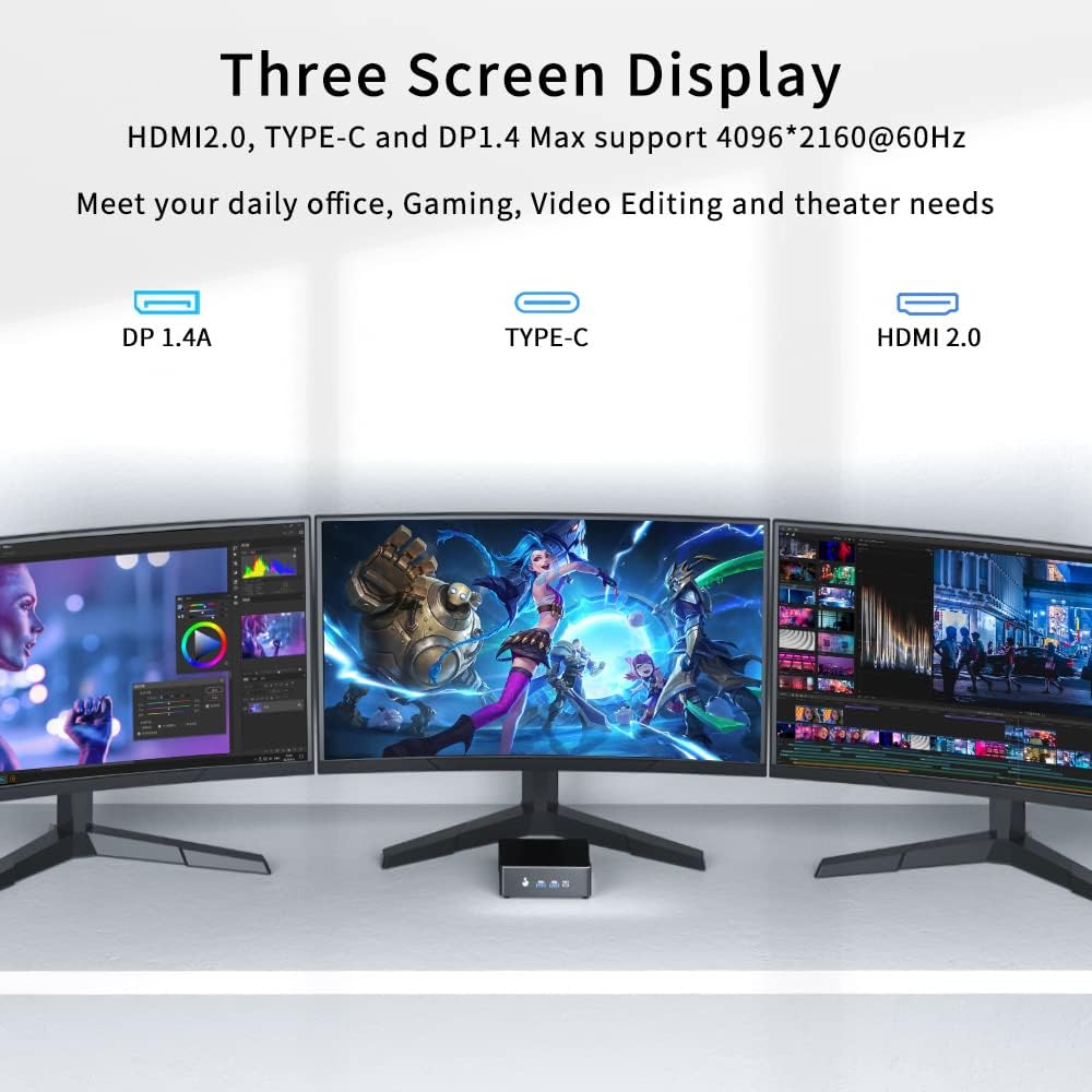 ⭐[شاشة ثلاثية] يحتوي الكمبيوتر الصغير على شاشة عالية الوضوح مع ثلاث وظائف إخراج الشاشة عن طريق توصيل منافذ DP وHDMI ونوع C. (يدعم HDMI وDP وType-C إخراج 4K@60HZ، ويمكن استخدام "Windows+P" للتحكم في شاشات العرض المتعددة. رسومات AMD Radeon 8 مدمجة، يمكنك استخدامها للعمل اليومي ومشاهدة الأفلام، ويمكنك أيضًا استخدمه في بعض الألعاب الخفيفة وتحرير الفيديو والمهام المعقدة.