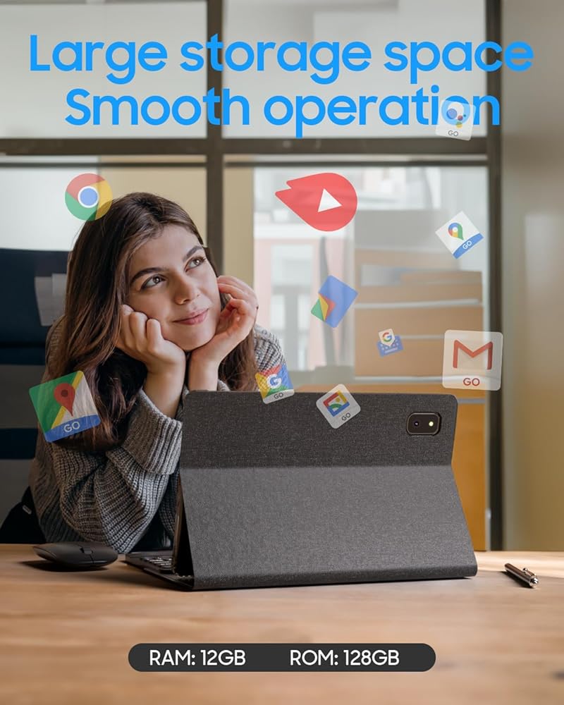 【شاشة بدقة 2000*1200 بدقة 2K FHD وبطارية 7580 مللي أمبير في الساعة: يتميز هذا الجهاز اللوحي 10.4 بشاشة FHD مذهلة بدقة 2K بدقة 2000*1200، مما يوفر صورًا مذهلة بألوان زاهية وتفاصيل حادة. توفر نسبة الشاشة 16:10 تجربة مشاهدة سينمائية، سواء كنت تبث أفلامك المفضلة أو تلعب ألعابك المفضلة. يستخدم الجهاز اللوحي 7580 مللي أمبير ومعالج منخفض الطاقة. تحقيق ما يصل إلى 8 ساعات من عمر بطارية الفيديو على الأقل. مريحة أثناء العمل أو الدراسة أو الترفيه.