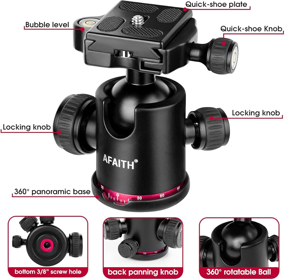 【رأس كروي بزاوية 360 درجة】: يمكن تنسيق رأس الكرة المعدنية بزاوية 360 درجة مع بانوراما التحريك بسهولة باستخدام مقياس التحريك المتدرج لمحاذاة الصور الدقيقة، مما يوفر لك رؤية بانورامية.